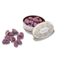 紫芋の風味と甘みを感じる和風ショコラ。ローストしたペカンナッツを、紫芋パウダーを練り込んだホワイトチョコレートでコーティングしました。