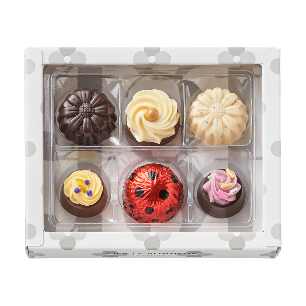 「たくさんのお客様に幸運が訪れますように」という想いを込めて幸運の象徴とも言われるてんとう虫、四葉のクローバーをモチーフとした商品パッケージにクローバーをモチーフにしたチョコレートやてんとう虫デザインのホイールを巻いたファンシーチョコなどビアンクール自慢のチョコレートを詰め合わせました。さまざまなお味のファンシーチョコレートやプレーンチョコレートなど多彩なチョコレートの種類も魅力のひとつとなっております。※こちらは同じ商品2箱セットになります。
