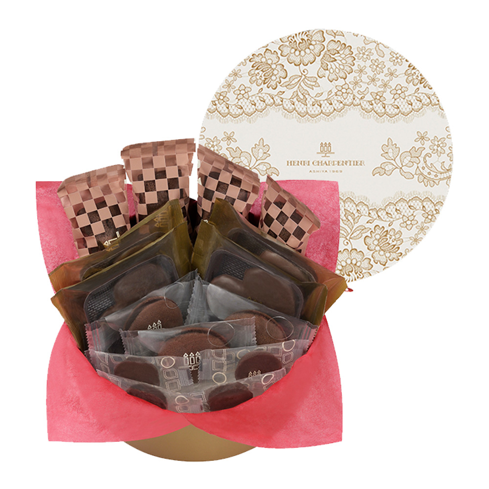 <フィナンシェ・オ・ショコラ>フィナンシェのためだけに開発されたチョコレートを使用し、アーモンドやバターの香ばしさの中でもカカオの風味がしっかりと感じられるよう丁寧に設計しました。焼き上げる直前にそっと加えることで、香りがふわりと広がり、ひと口ごとにチョコレートの存在感が際立ちます。<プティ・ガトー・アソルティ>(ミルクチョコ)まろやかに広がるミルクチョコレートの甘み。<しあわせサブレ<ショコラ>>塩味のきいたさくさくのサブレをくちどけの良いチョコでコーティングしました。冬だけしかお楽しみいただけない味わい深いサブレです。<ラング・ド・シャ>甘さ控えめで、大人の味わいの焼き菓子。ラング・ド・シャ(猫の舌)と呼ばれる薄焼きクッキーに、香り高いラムレーズン入りクリームをサンドしました。