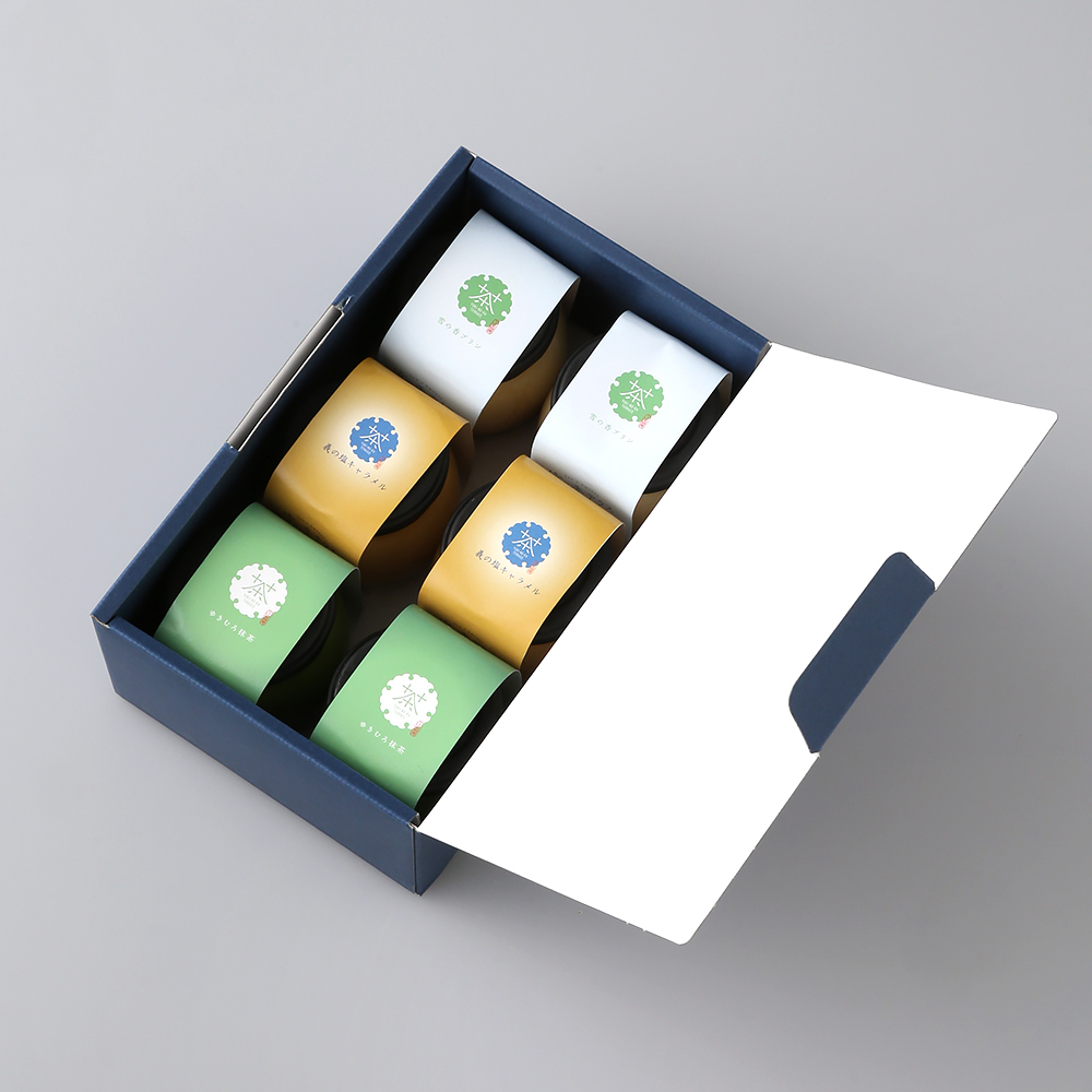 雪室抹茶を使った「抹茶生チョコ」と越後棒茶を使った「棒ほうじ茶生チョコ」を贅沢に使った「生チョコプリン」2種類と当店オリジナルの「たまごプリン」の詰め合わせ。茶葉の風味を活かし、甘みを抑えた大人味のプリンです。
