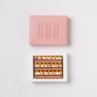 フランスでは瓦を意味する「チュイール」というお菓子が昔からあり、日本では「瓦せんべい」というお菓子が昔から親しまれています。同じモチーフでも文化背景が異なると違った味・形になること。どちらも普遍的なものとして歴史の中に受け継がれているということ。そこからヒントを得たRAUのシェフが、フランスと京都の街で見た瓦屋根の風景の記憶を融合させ、日本人が表現する新しいチュイールとして生まれたのが「Nami-Nami」です。〈ストロベリー&ローズ〉甘酸っぱいストロベリークリームと、フリーズドライの苺を散りばめた香り高いローズクリーム、コスタリカ産カカオ豆からつくるビーントゥバーチョコレートをサクサクのバニラサブレでサンドし、様々な食感と香りが同時に楽しめる贅沢な味わい。
