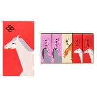 <とらや>「小形羊羹5本入 干支柄化粧箱」×1(小倉羊羹『夜の梅』×2本、黒砂糖入羊羹『おもかげ』×2本、抹茶入羊羹『新緑』×1本)