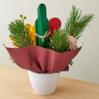 アーティフィシャルフラワー(実)、マツカサ、水引、門松、樹脂製花器(一部にリサイクル素材配合)、お手入れのしおり付