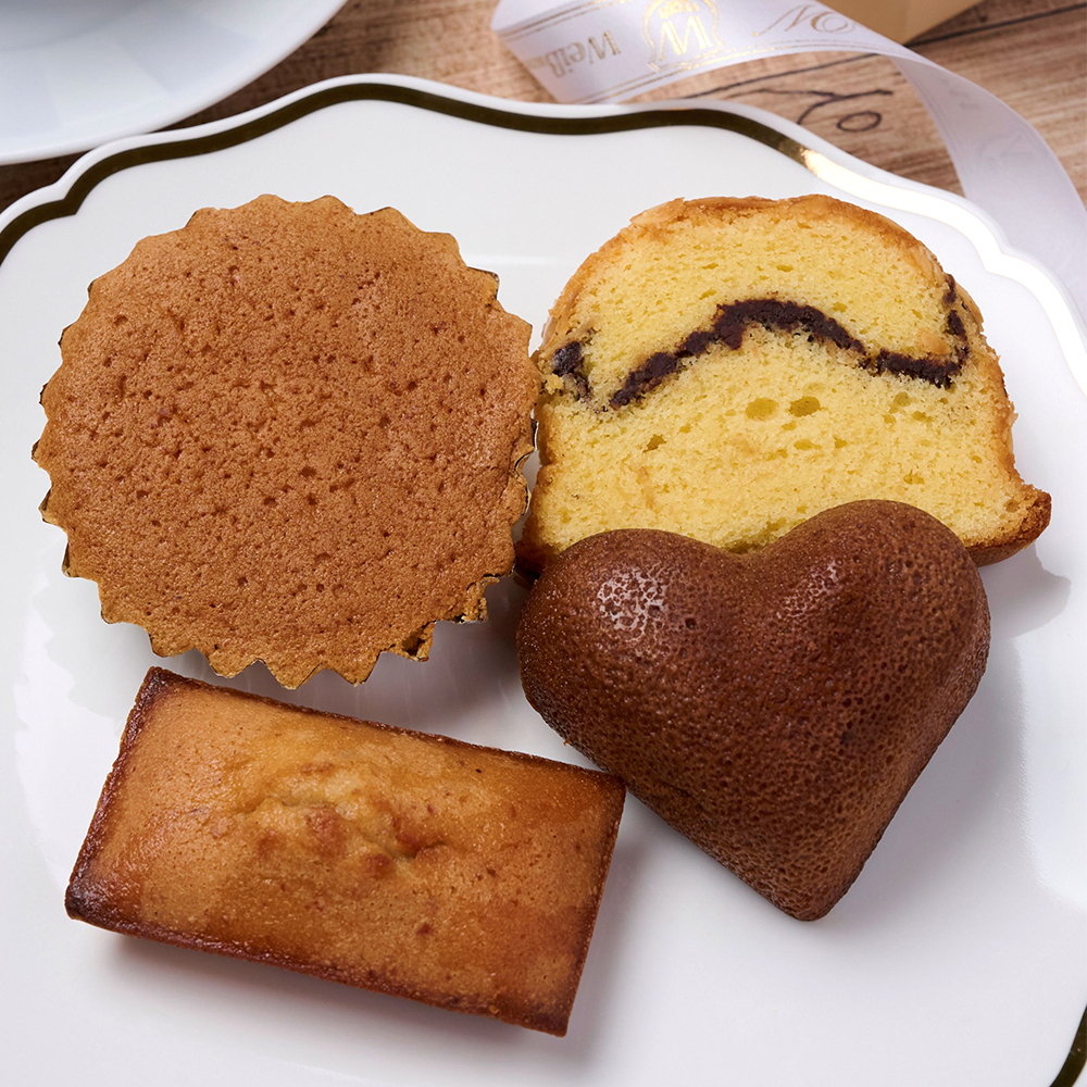 ハンザー×1、マンデルスパニッシュ×1、プレーンフィナンシェ×1、ハートケーキ×1
