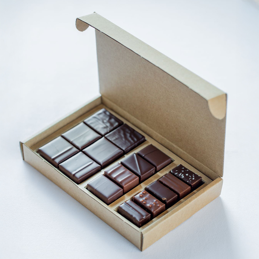 15個(ガナッシュ・オリジン3種 各2個、ガナッシュ・グルマンド4種 各1個、プラリネ・ア・ランシエンヌ5種 各1個)