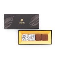 ジャン・フィリップ・ダルシーは常に本物のアロマを求め、世界中のカカオ農園を巡り、自身の創作に特別なサムシングをもたらしてくれるカカオを探し続けています。より良い原料を選び、より良い生産者の技術を望み、世界中の小規模なフェアトレードカカオ農園から直接カカオ豆を購入し、自身の工場で一切の妥協をすることなく、オリジナリティあふれるチョコレートに仕上げています。この商品は2種のトリュフ(ナチュール2個、シャンパーニュ2個)をアソートしており、ダルシーの滑らかで奥行きのある、深い味わいのトリュフを堪能できます。