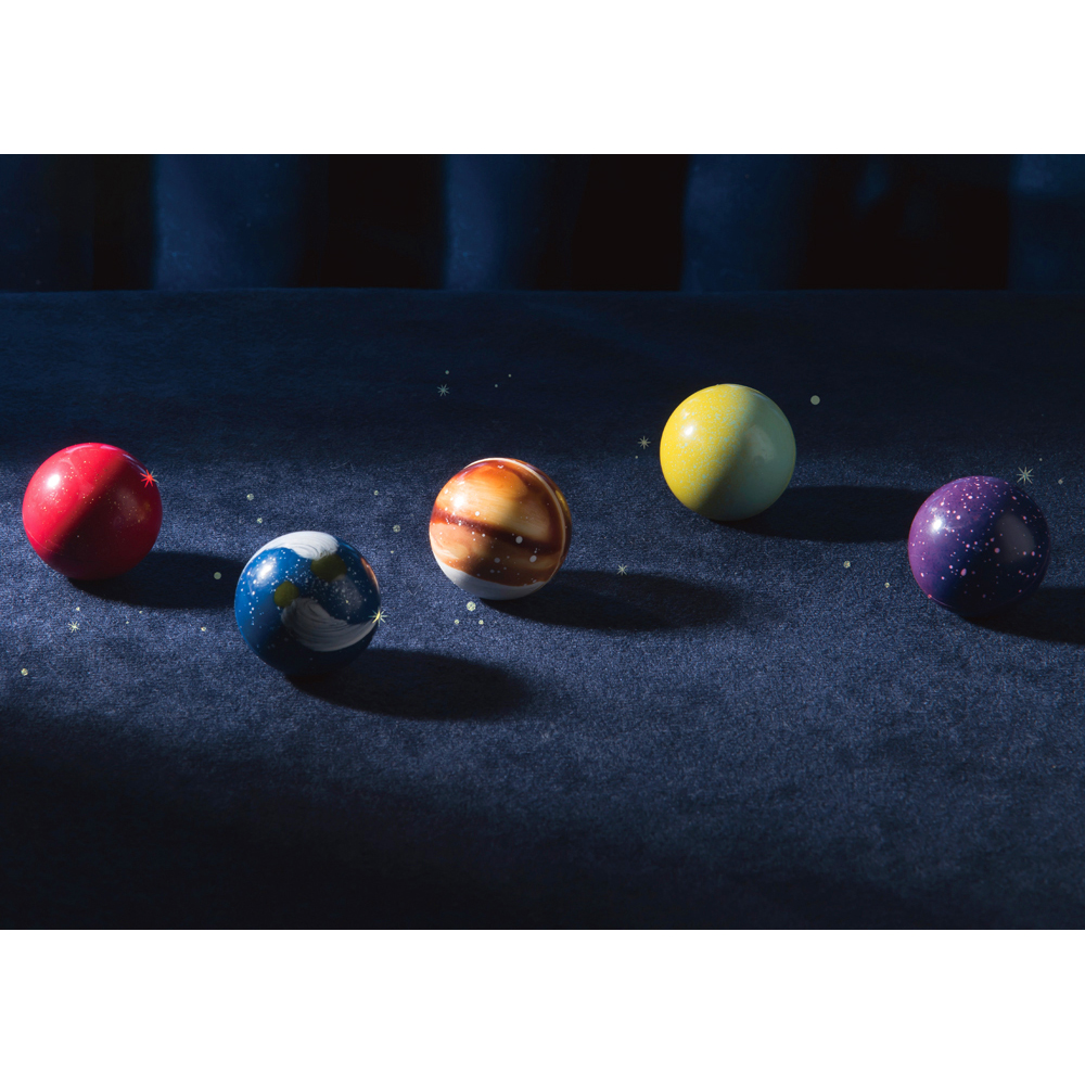 まるで惑星をそのままショコラにしたような球体ショコラ。ギリシャ神話に込められたオリンポスの神々を司る惑星たちのアソート。