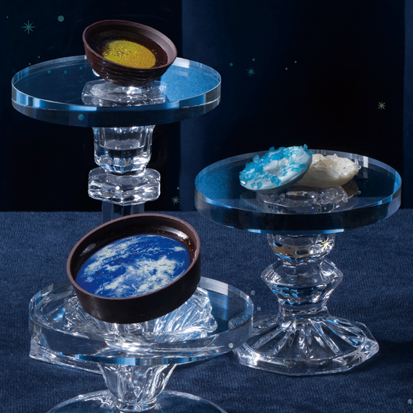 月夜の水面に映る美しい惑星をイメージしてチョコレートで表現しました。透明感溢れる神秘的なショコラアソート。