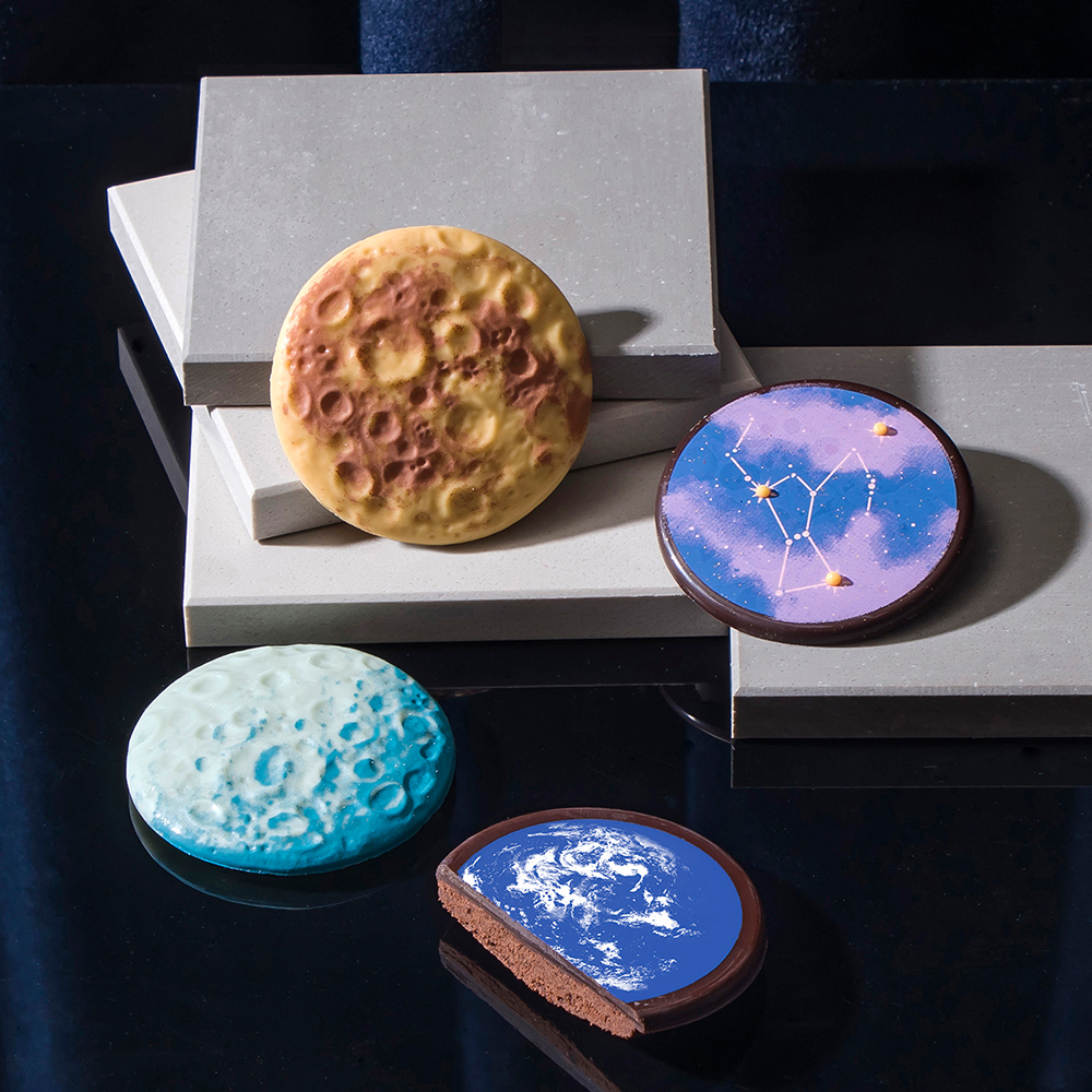 星々の煌めきを写したショコラに食感の良いココアサブレを重ね、神秘的な焼菓子に仕上げました。