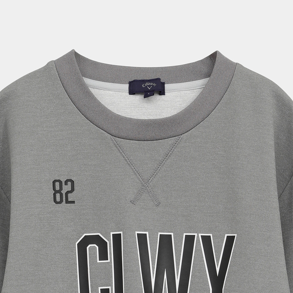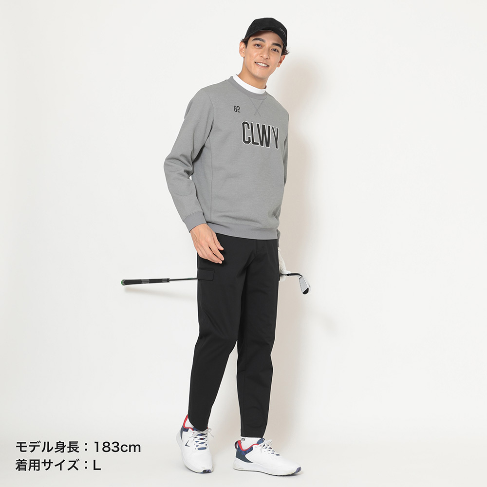 胸にはレトロ感のあるカレッジ風のロゴが大きくデザインされています。ゴルフ感を抑えたデザインなので、街着や練習着としても活躍します。