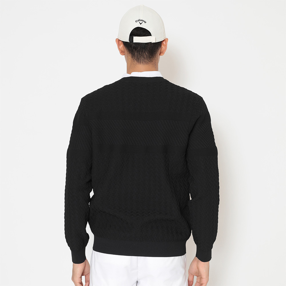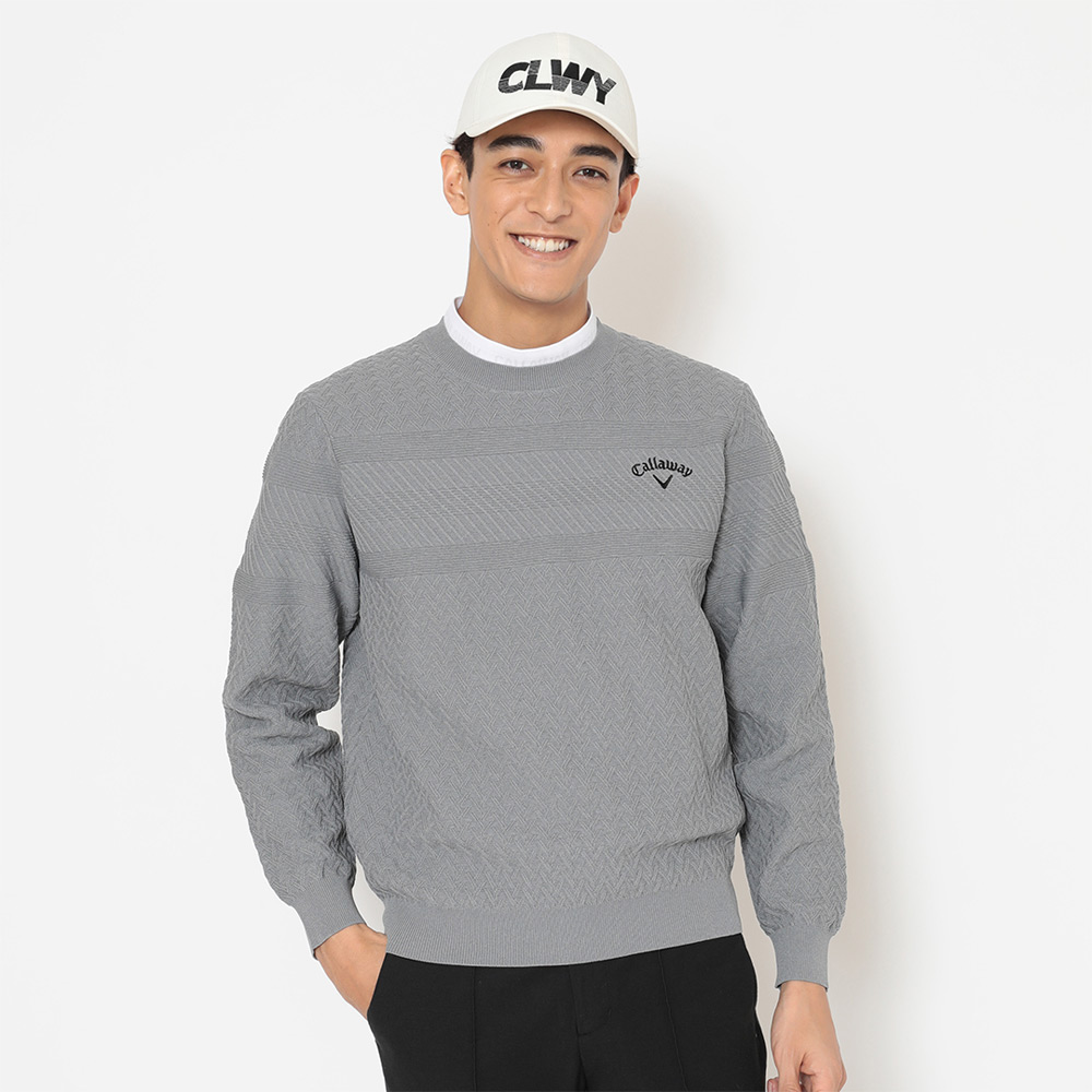 ポリエステル特有のハリを抑え、体に自然に馴染んだシルエットになります。編地変化を施しているので、無地の中にも凝ったデザイン性があるアイテムです。