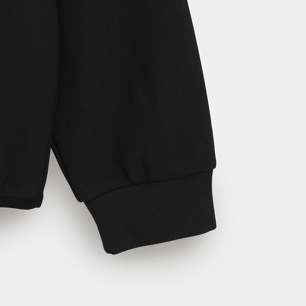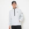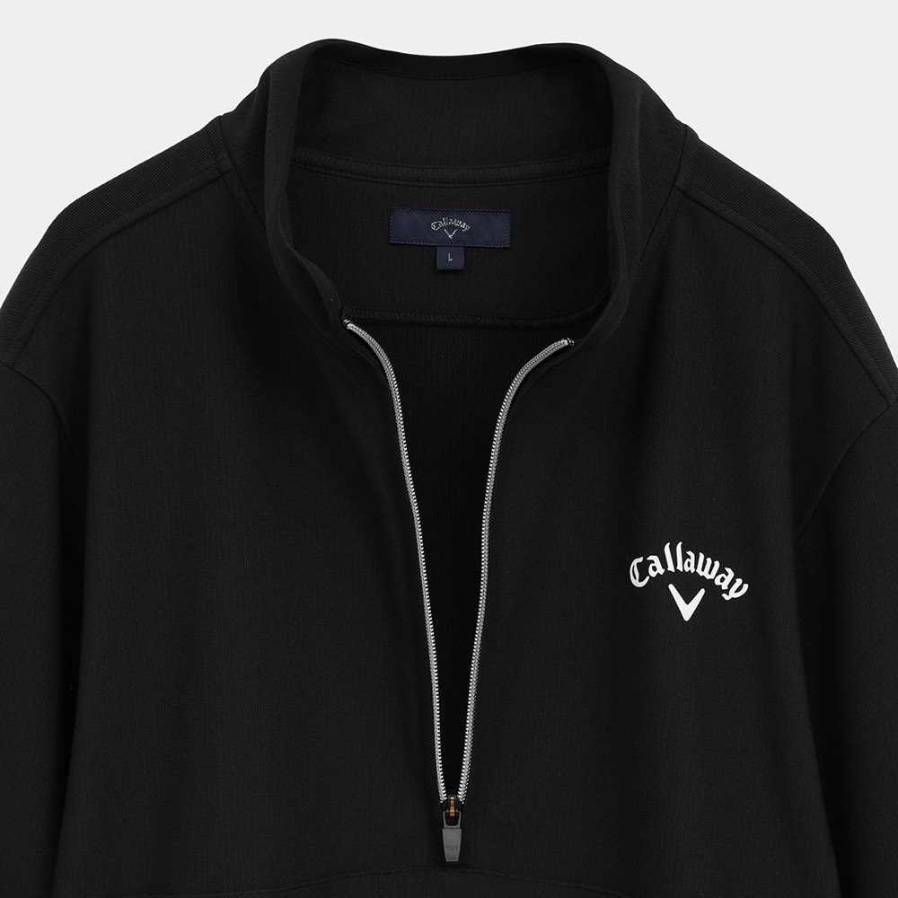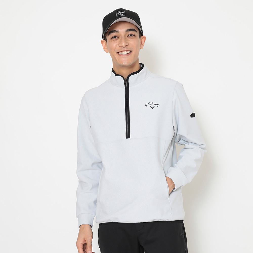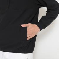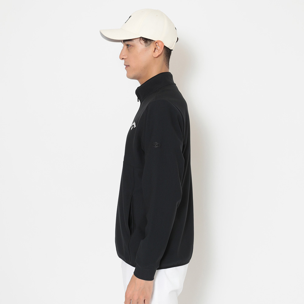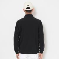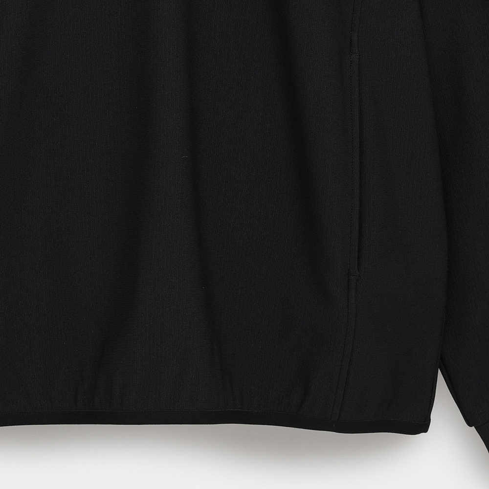 半袖アイテムとの重ね着はもちろん、1枚でも着用することができ、1.5レイヤー的な扱いができるアイテムです。光沢感のあるフロントジップとパイピング配色がデザインポイントです。ハーフジップを開閉することができます。