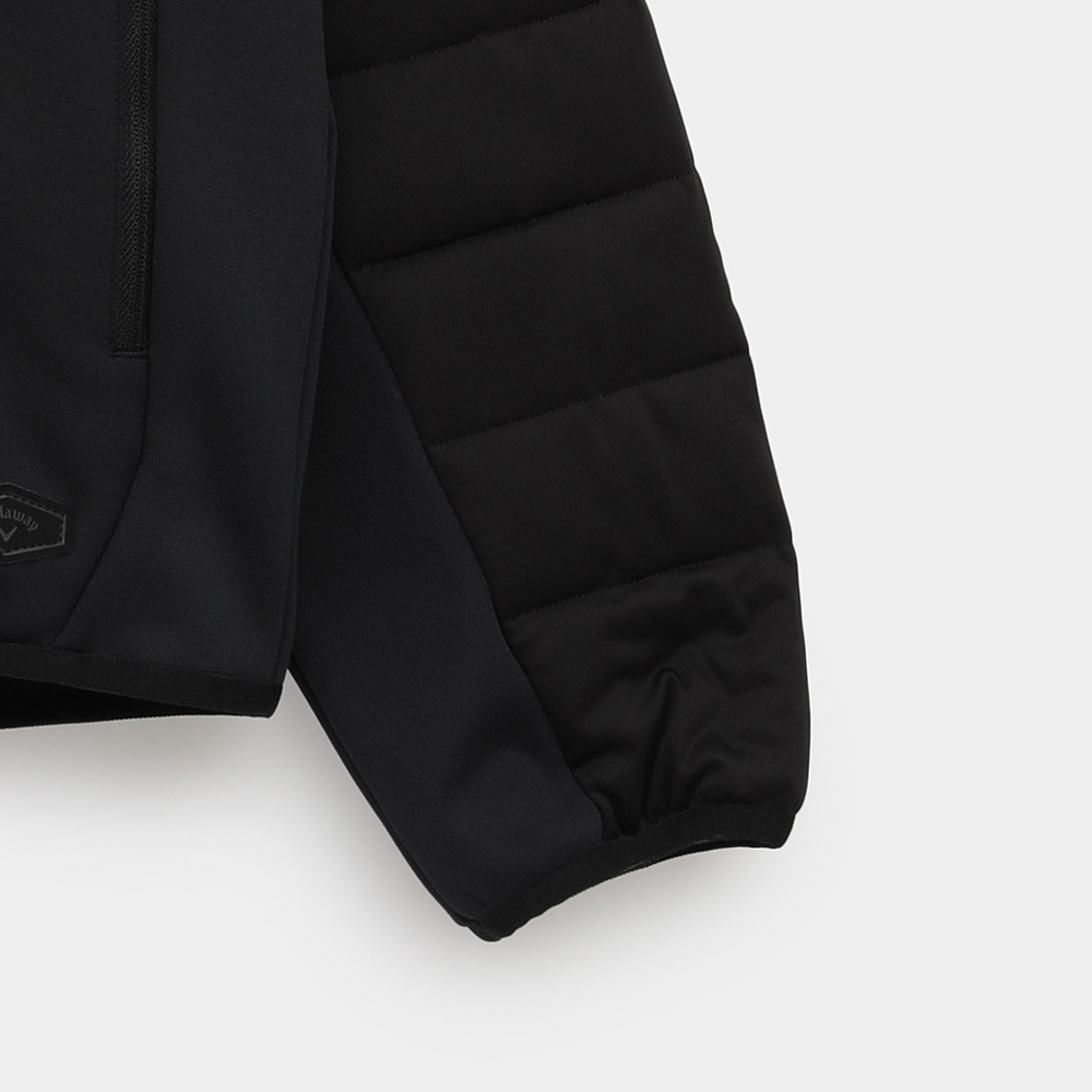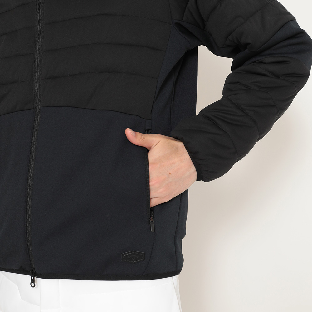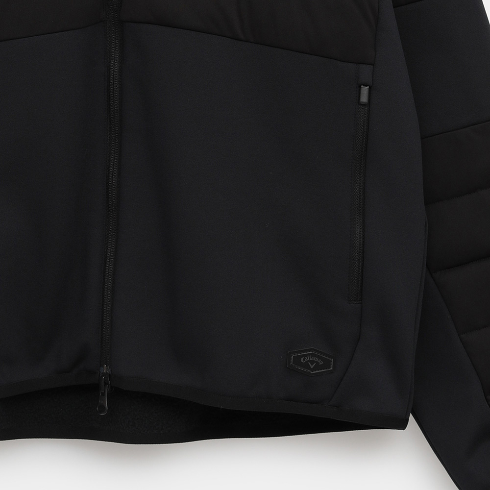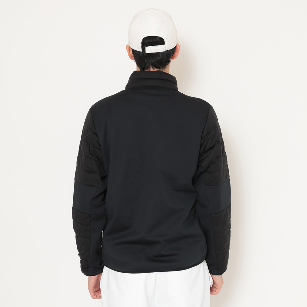 前身と袖などにスターストレッチ素材、後身と前身下などには裏面起毛のフリースと、異素材をハイブリッドさせたミドラーです。