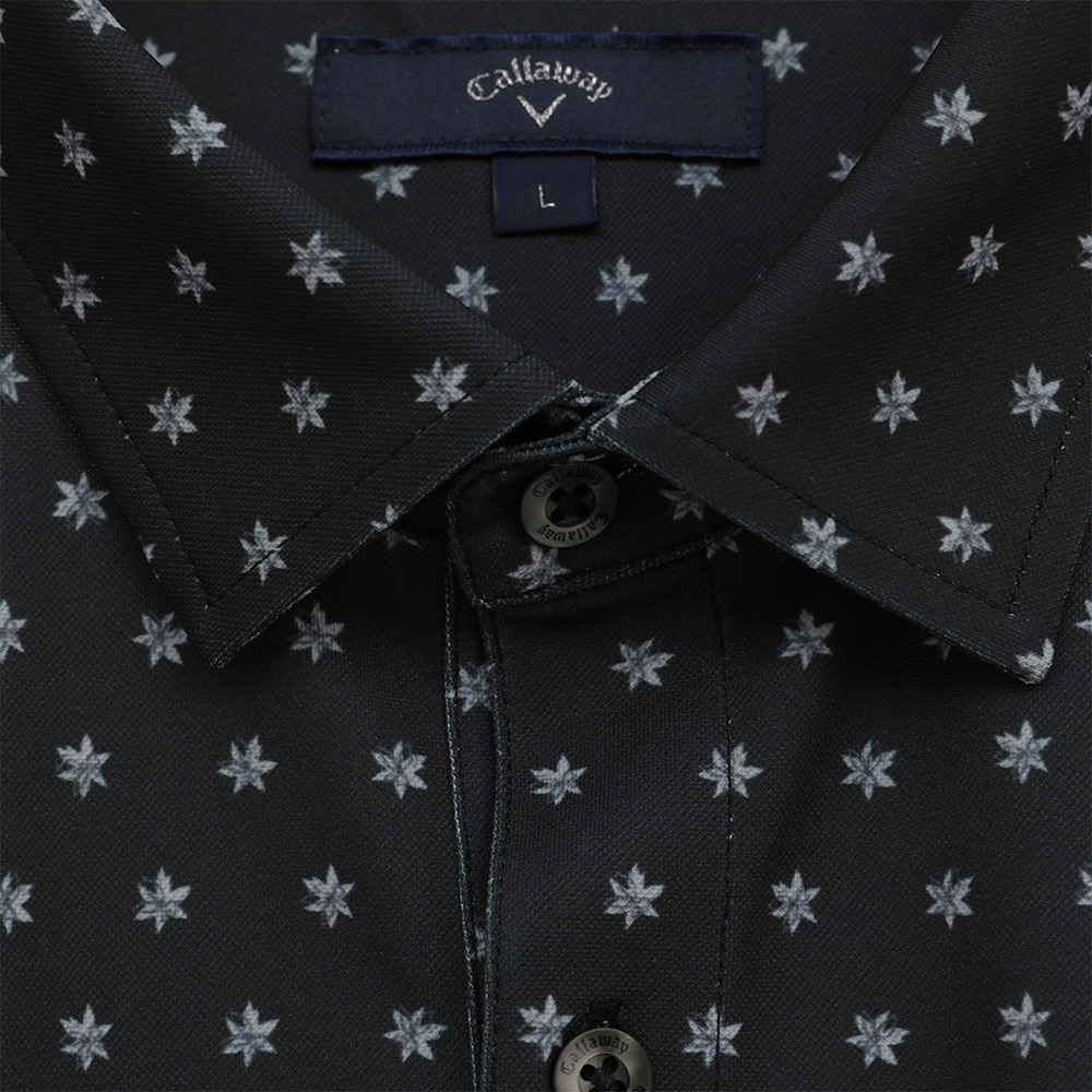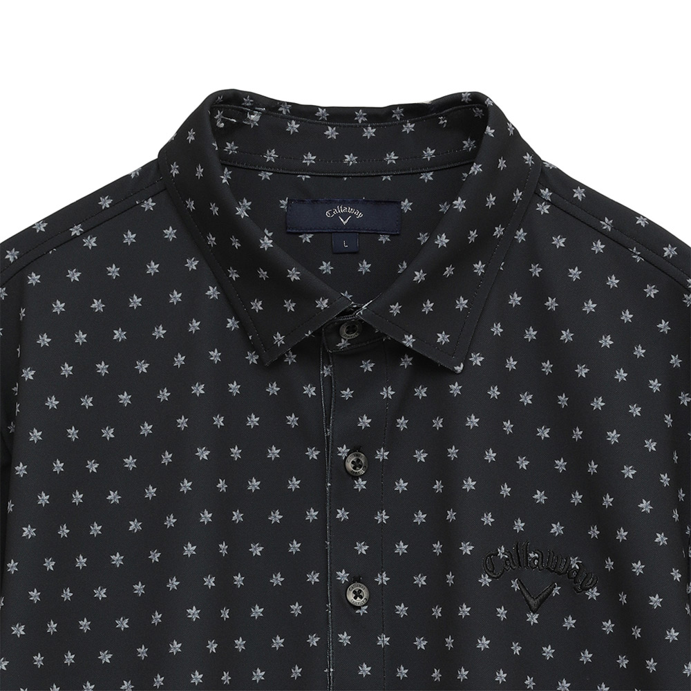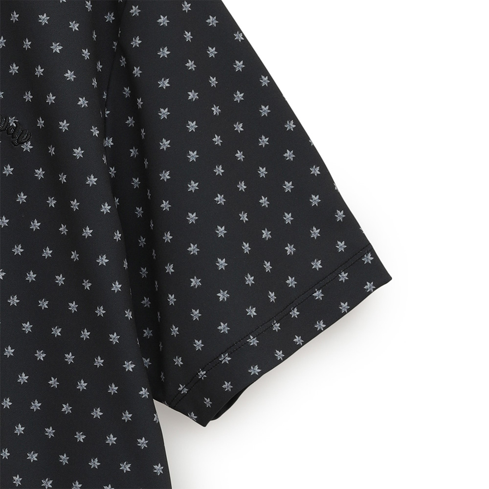 目の細かいコンパクトな素材を使用しているので、スッキリとしたシャツに仕上がっています。小さな柄なのでコーディネートの邪魔をしません。吸汗速乾やUPF15など晩夏~初秋まで着用できる機能性も魅力的な一枚です。