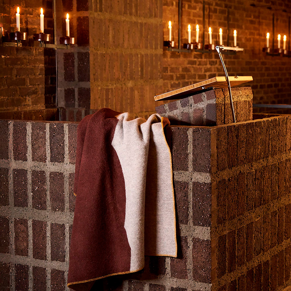 スウェーデンの建築家Sigurd Lewerentz(シーグルド・レヴェレンツ)の傑作「聖ペトロ教会」へのオマージュとして誕生したブランケット「FACADE」。ブランケットの色はすべて、教会が持つ色に基づいて選ばれています。デザイナー クリスティーナ・スタルクが表現したのは、聖ペトロ教会に入ると感じられる、包み込むようなやさしさ、温かさ。クリスティーナの強い想いによって生まれた一枚です。リバーシブルでお使いいただけます。原産国:ラトビア