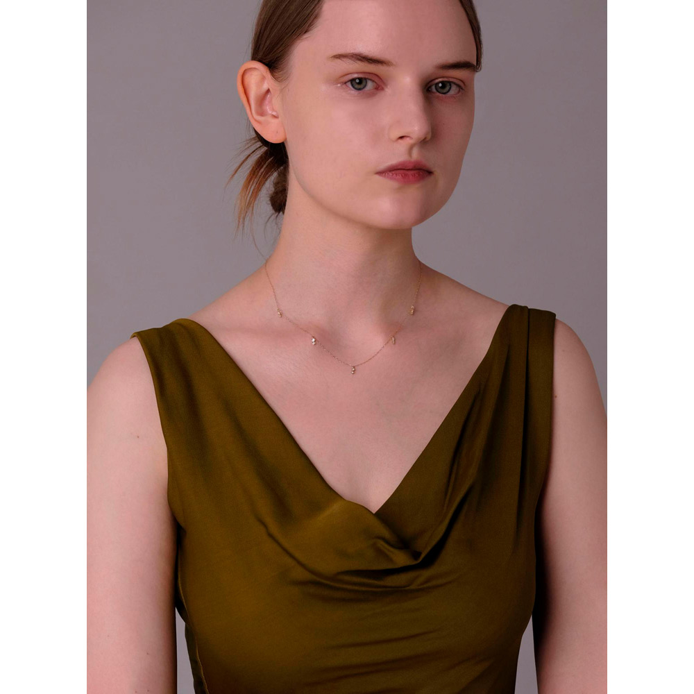 合計 10 ピースのダイヤモンドが胸元で楽しげに踊るネックレス。ダイヤモンドの清廉な輝きは、時代を超えて人々の心を惹きつけてきました。日々の装いにも輝きとトキメキが共にあるように・・・そんな願いを込めて生まれたエッセンシャルなジュエリーです。
