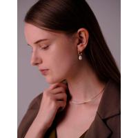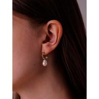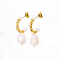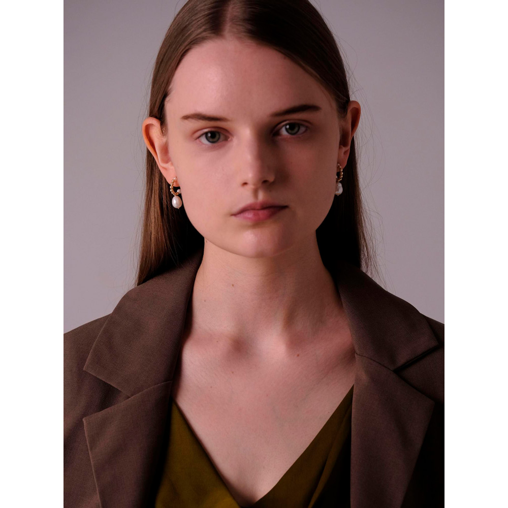 つぶつぶボールのハーフフープから大粒パールがひとつぶら下がったコンパクトなピアス。端正な佇まいながら、洒落て見えるボリューム感を備えた頼れるアイテムです。