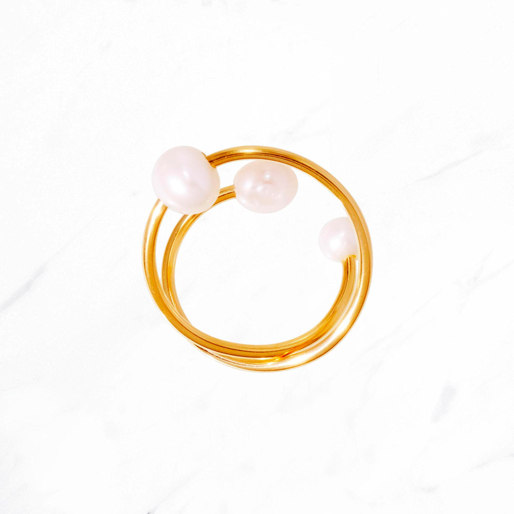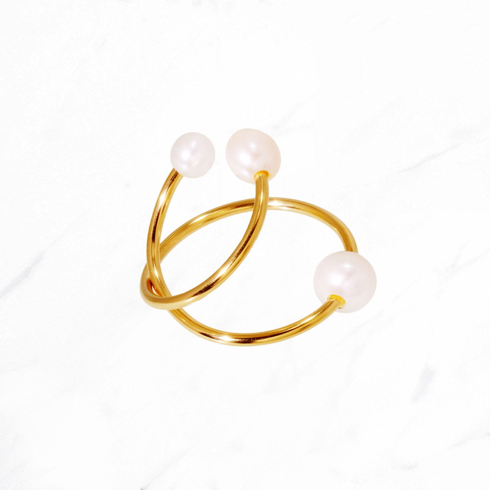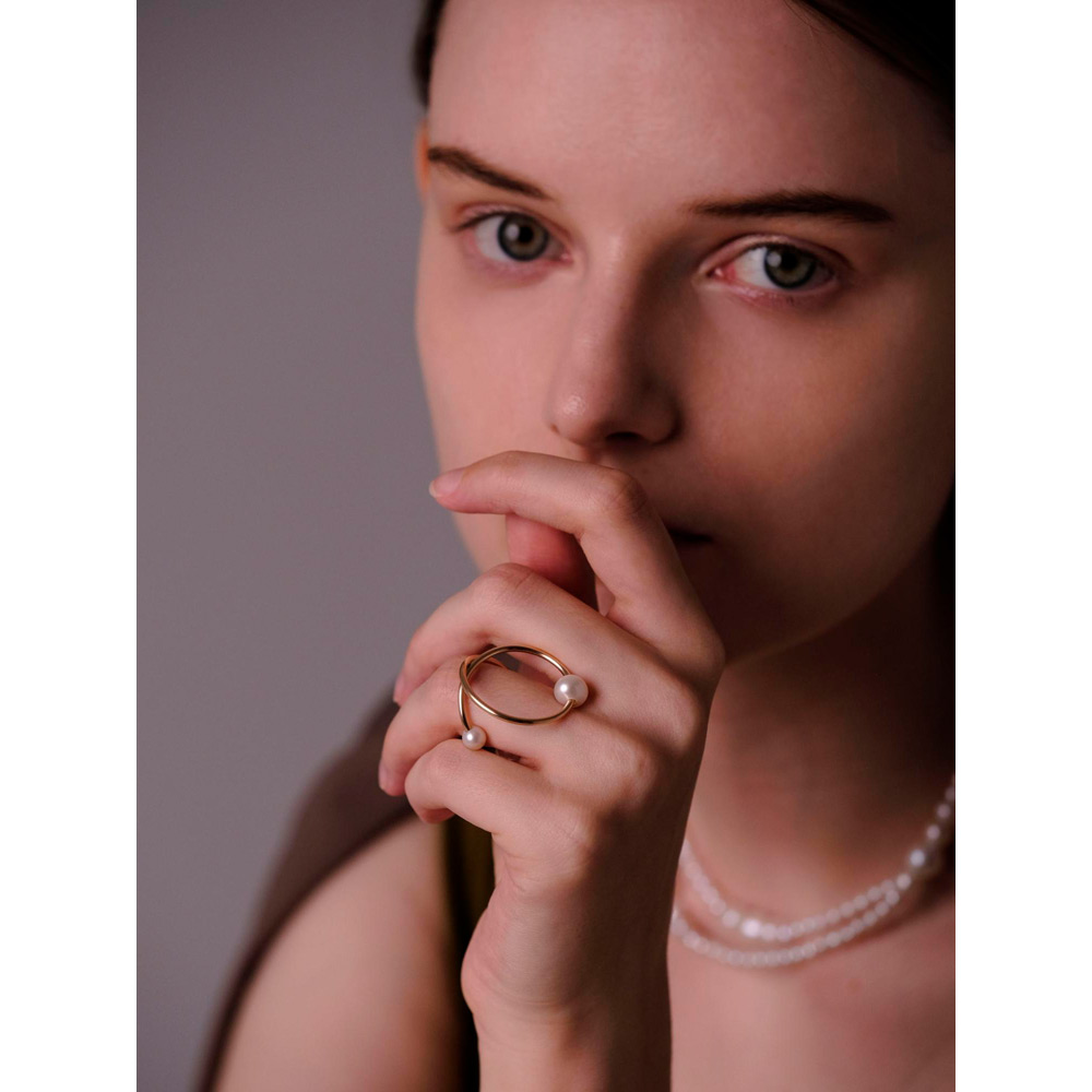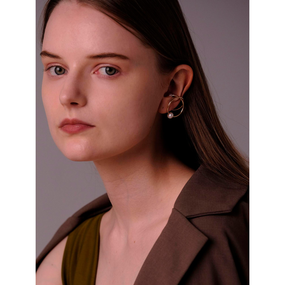 イヤーカフ & リングとして着用できるマルチウェイのアイテム。職人の手作業で形作られるダイナミックなワイヤーワーク、先端にあしらった個性的なパールが身体のカーブに自然とフィットし、柔らかな曲線美を描きます。