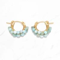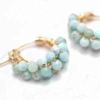 ラリマーはカリブ海に浮かぶ小さな島のドミニカ共和国から産出された、海のようなブルーが印象的な石です。ゴールドフープに小さなラリマーをランダムに巻き付けて遊び心たっぷりに仕上げたピアスです。