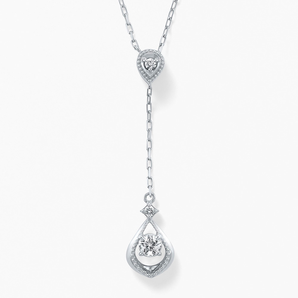 トップパーツをスライドすることで、エレガントなY字シルエットへアレンジ可能。背面には瑞々しく輝くスターリーブルーダイヤをあしらい、気分や装いにあわせてリバーシブルで身に着けられます。センターには大小ふたつの星が映し出される “Wish upon a star(R)” ダイヤモンドをセッティング。爪や石座を極限まで繊細に仕上げることで、ダイヤモンドの持つ透明感と輝きを最大限に引き出しています。ベーシックなデザインでありながら、スタイリングによってさまざまな表情に変えられるため、あらゆるシーンで幅広く活躍するネックレスです。“悲しみの涙も人生を彩る輝きに変えていけるように”という、ジュエリーの輝きにちなんだポジティブな願いを込めました。大いなる恵みをもたらし幸せを運ぶシンボルとして、かけがえのない想いや願いを届けます。