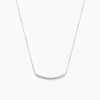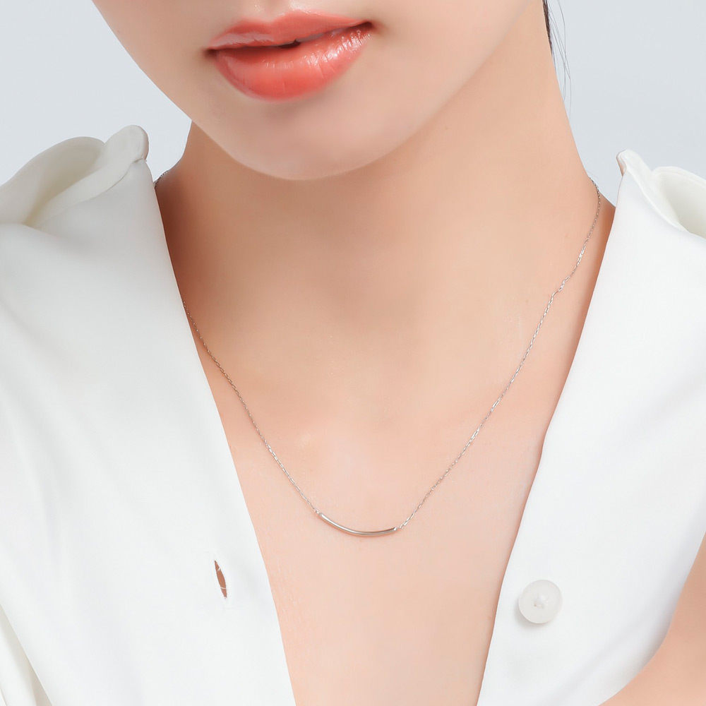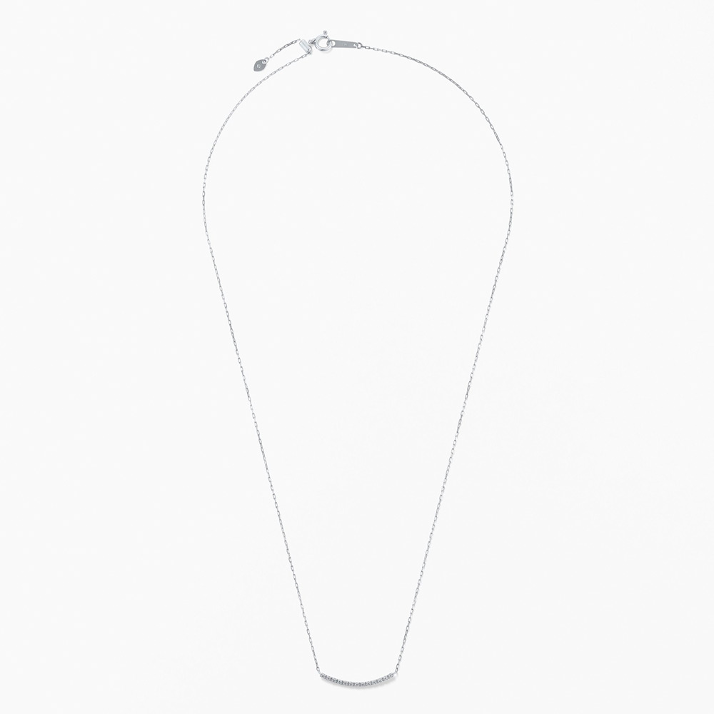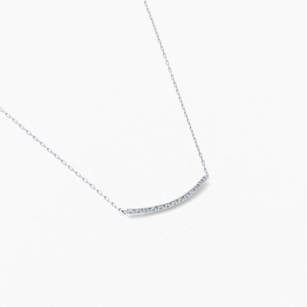 レール状のフォルムがモダンな印象を与え、こなれた雰囲気を演出します。ダイヤモンドは、Hカラー、SIクラスのクラリティ、Goodカット以上の品質の中から厳選し使用。極小サイズの爪が上質なダイヤモンドの輝きを引き出し、デコルテに上品な華やかさを与えます。背面はツヤ感が美しい地金の仕立てに。装いや気分に合わせてリバーシブルで楽しめるため、コーディネートの幅を広げてくれます。スライド仕様のチェーンのため、トップスに合わせて長さの調節も可能。ダイヤモンドの存在感に負けない線径のチェーンを採用することで、高級感のある仕上がりにこだわりました。シンプルなデザインだからこそ、永く愛せるクオリティとデザイン、日々に寄り添う使いやすさを追及したネックレスです。