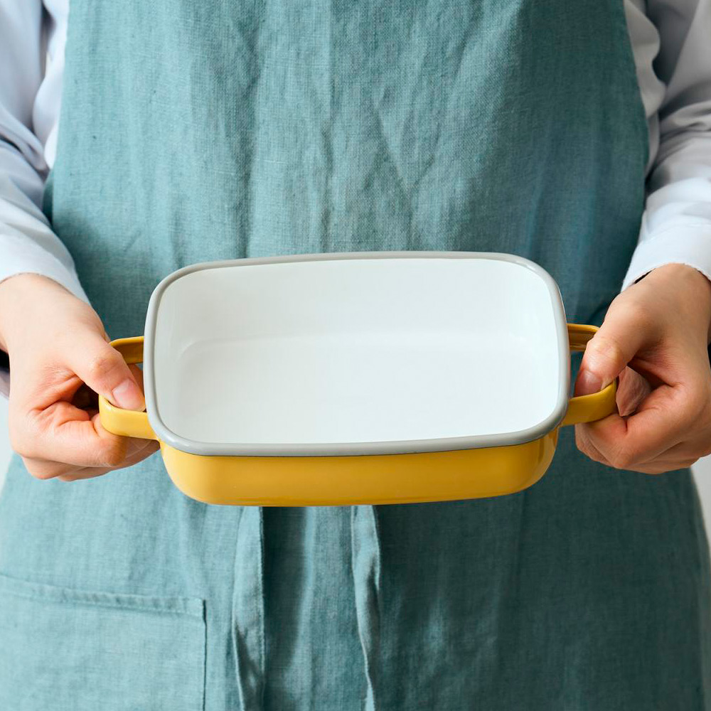 ハンドルが付いていることにより、ホーロー保存容器としてだけでなく、オーブンでグラタンを作ったり、冷やしてゼリーを作ったりと用途が拡がります。そのまま器として食卓に出してもOK。
