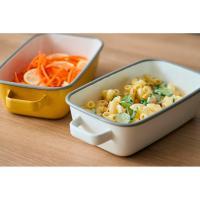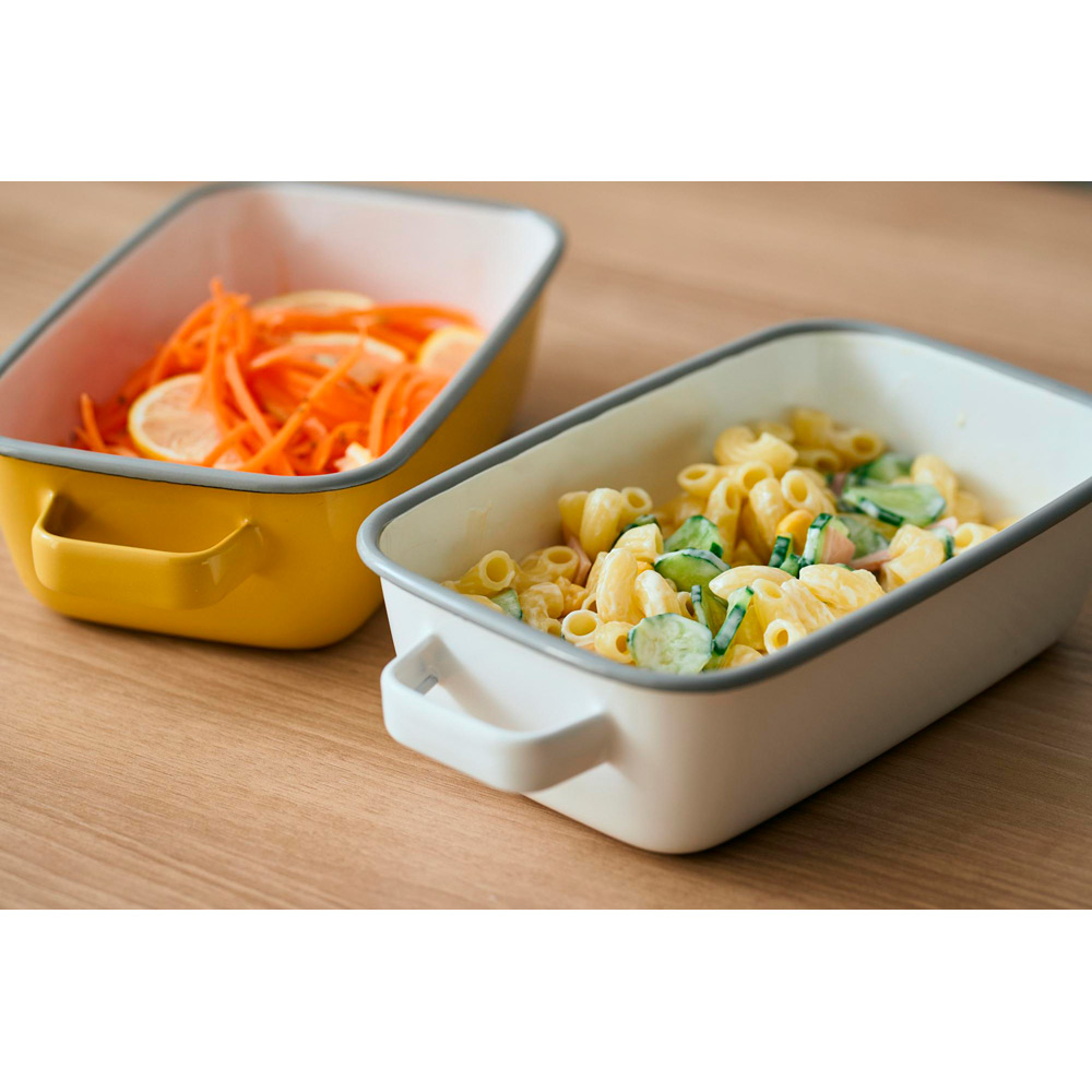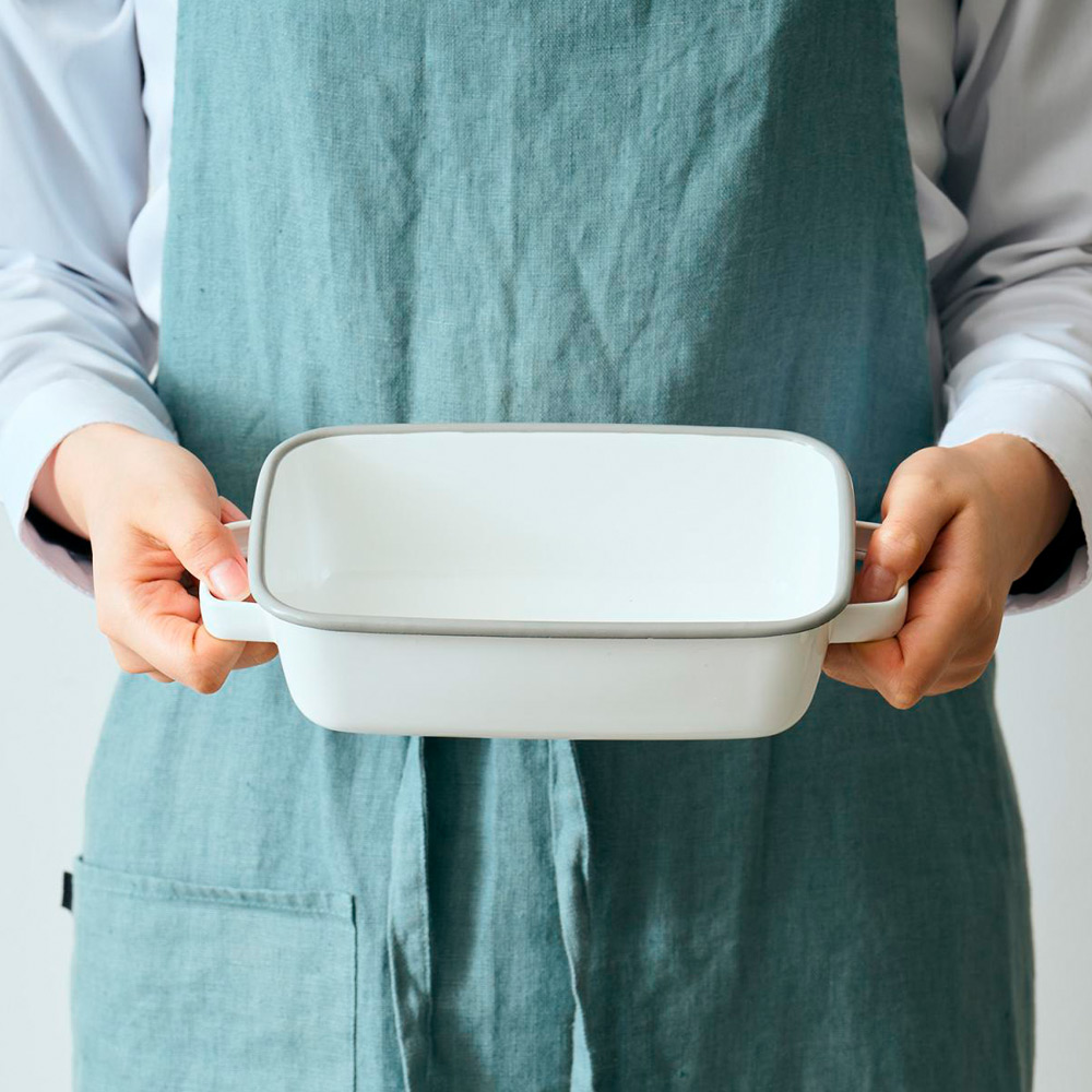 ハンドルが付いていることにより、ホーロー保存容器としてだけでなく、オーブンでグラタンを作ったり、冷やしてゼリーを作ったりと用途が拡がります。そのまま器として食卓に出してもOK。