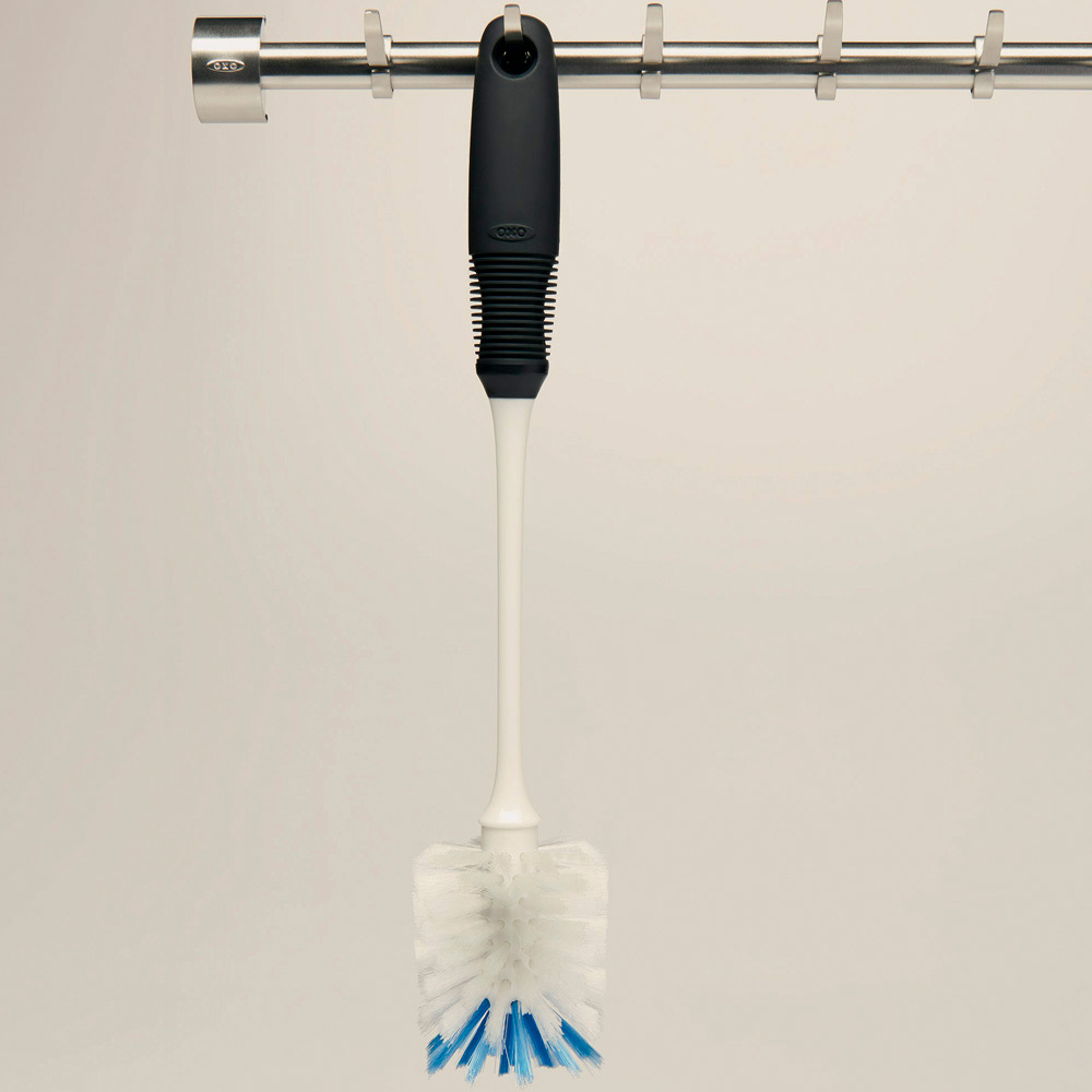ボトルや哺乳瓶などのお手入れに便利なのが、このボトルブラシです。適度に柔軟性のあるネック部で、隅々まできれいに洗うことが可能。柔らかく、濡れた手でも滑りにくいグリップでいつものお手入れがより快適に。