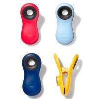 食材の袋をとめたりメモを挟んだり、便利なクリップセットです。食べかけのお菓子やパンの袋、冷凍食品など幅広く使え、冷蔵庫などにつけられるマグネット付きです。マグネットで固定すれば、ふきんやタオルをクリップにはさんで使用でき便利です。フックには穴付きで、先端にはすべり止めが付いています。鮮やかな4色のセットです。