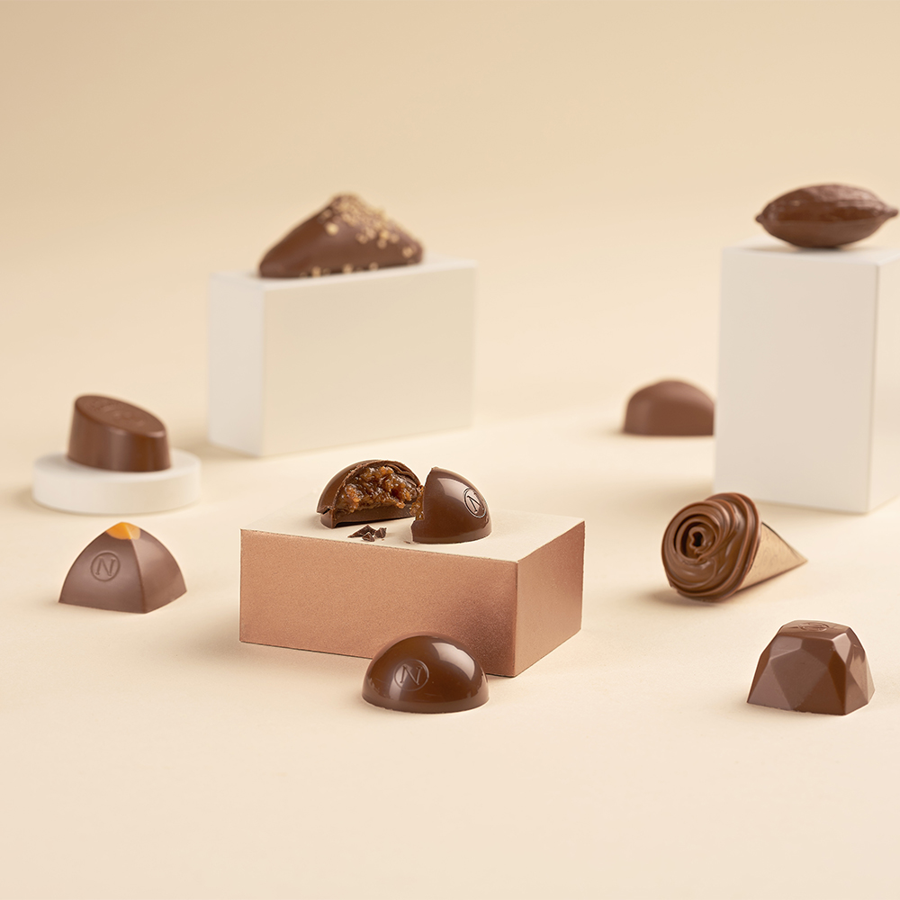 歴史を刻み続けるノイハウス。ベルギーでの万国博覧会開催記念で作られた「カプリス」やボンボンショコラ誕生100周年を記念して作られた「ディヴィン」をはじめ、14種類のチョコレートは160年以上あるノイハウスの歴史、発展、情熱の数々を物語っています。メートルショコラティエによって創作された喜びがあなたに届きますように。