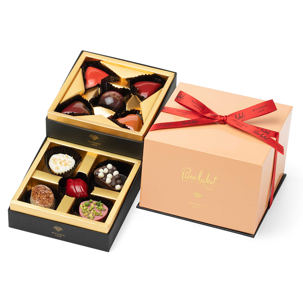 長年愛されているプラリネとキャラメルが2層になった食べ応えのあるシュバリエと、新作ショコラを含むストロベリーを使用したボンボンや、シャンパンとラズベリー、モレロチェリーのガナッシュなどフルーツフレイバーを中心にしたアソート。鼻腔をくすぐる香りに魅了されて。