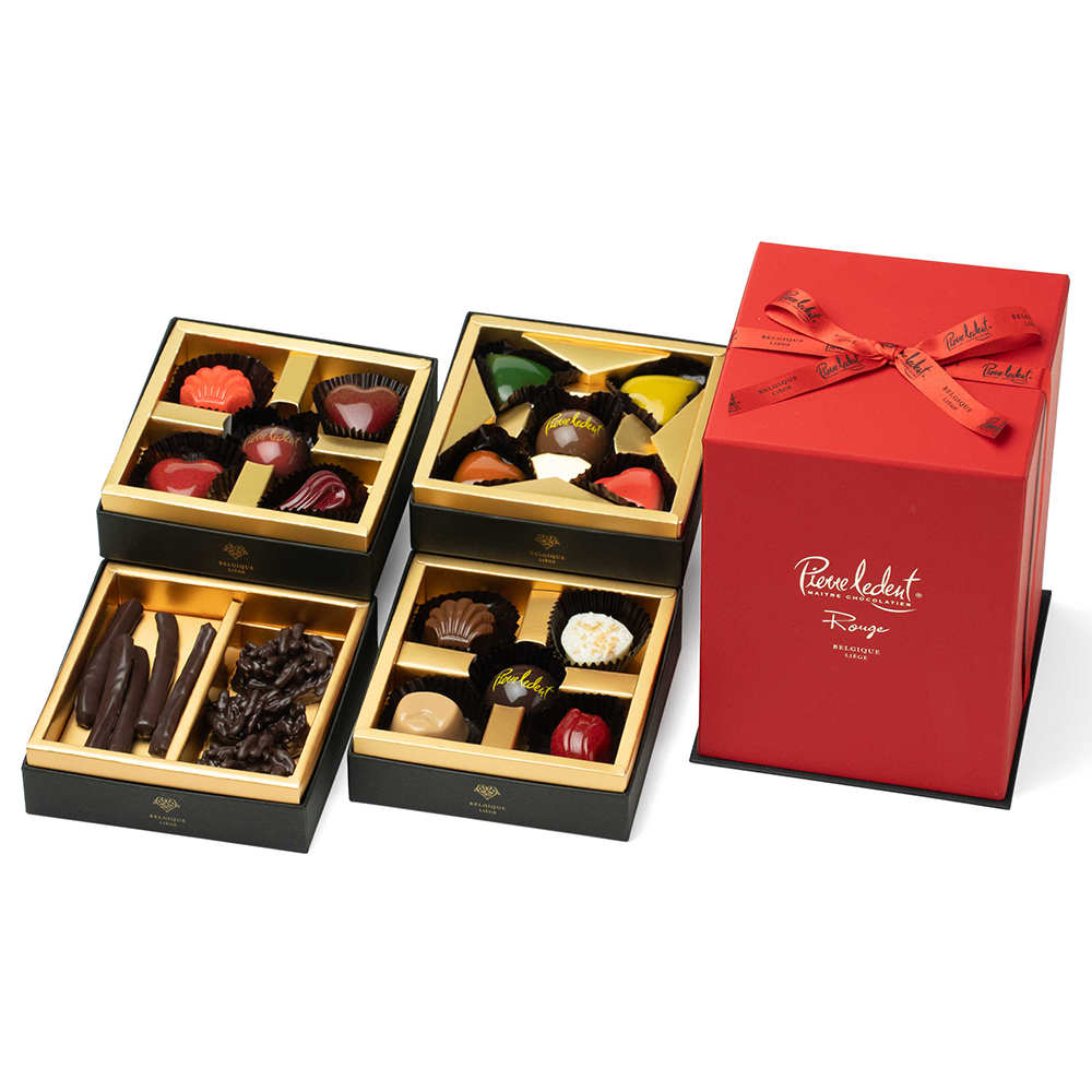 真紅に染まった美しさを演出する上品なボックス シャトー ルージュ。新作の2種のストロベリーショコラをはじめ、甘く香るココナッツガナッシュやハワイアンブラックソルトキャラメルなどピエール・ルドン渾身のアソート。ルージュと過ごす特別な時間をあなたに。