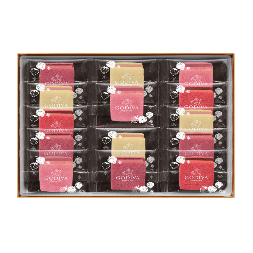 14個(ストロベリー&ホワイトチョコレート・ストロベリー&ミルクチョコレート各4個、ストロベリー&ルビーチョコレート・ストロベリー&セミスイートチョコレート各3個)