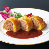 牛肉のパテをパイ生地で包んで焼き上げ、旨味を閉じ込めたビーフパイ。〈ホテルオークラ〉で人気の味です。