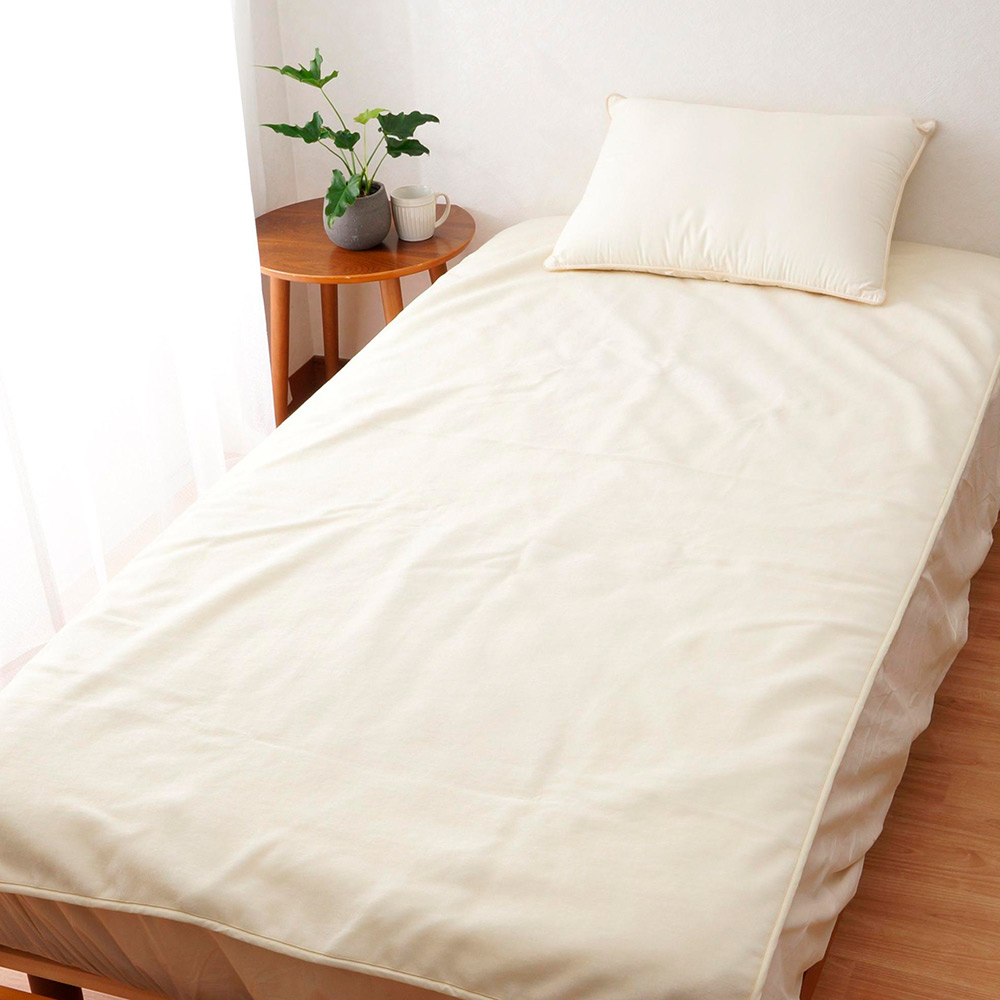 メリノウールをパイル部分に使用した年間お使いいただける素材のシーツです。