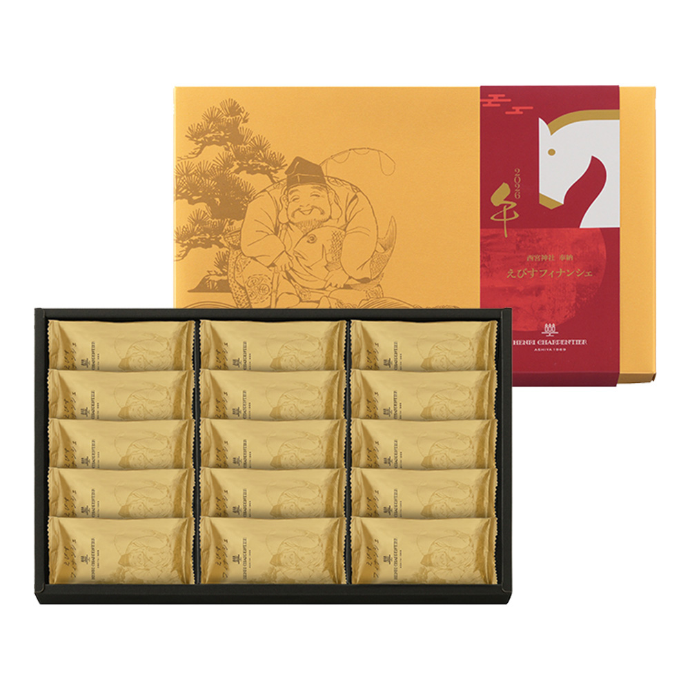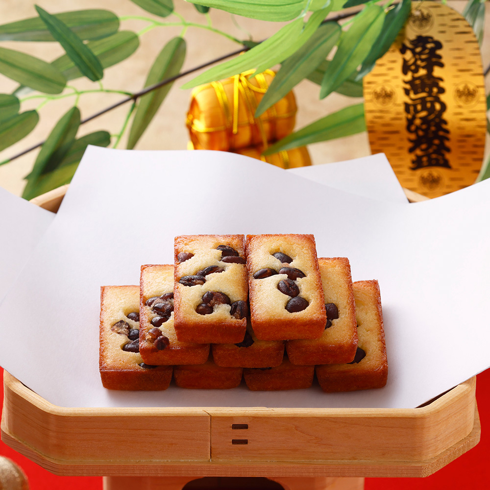 今だけ全国に解禁。新春の縁起菓子として、えびす宮の総本社「西宮神社」に奉納され、縁起物「大納言小豆」をのせて焼き上げたフィナンシェ。その年に3名のみ選ばれる「福男」に贈呈される、この上ない縁起物です。新年の幸運を願う特別な一品として、期間限定パッケージでお届けします。
