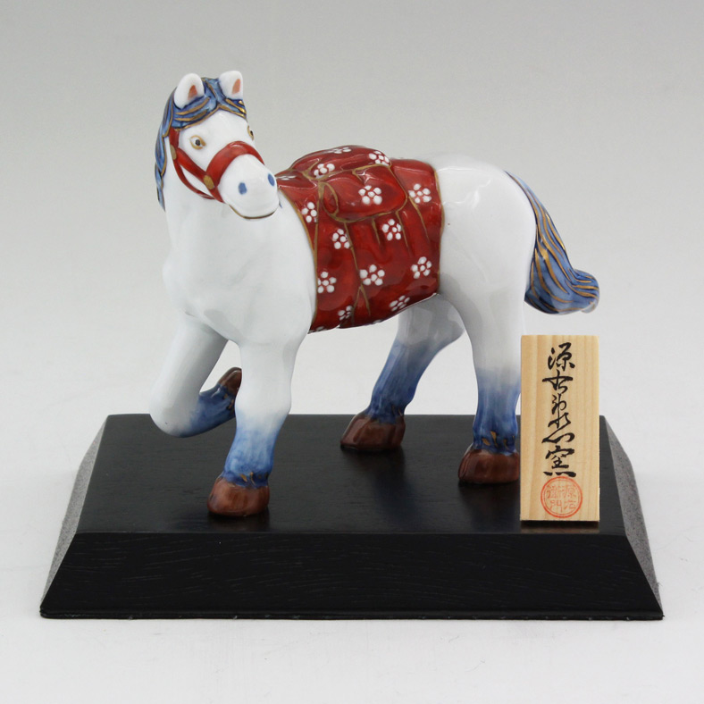 2026年は丙午(ひのえうま)の年。力強く駆ける馬は、飛躍や前進の象徴とされています。新しい年が実り多い一年となりますように、源右衛門窯では願いを込めた干支のアイテムを製作しております。源右衛門窯らしい色彩と柄で絵付けを施した午の置物です。
