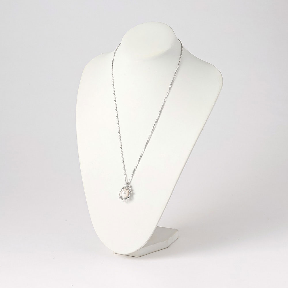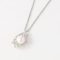 淡水養殖真珠(約12mm1個 ホワイト系・セミラウンド型)、枠:シルバー(ロジウムメッキ)、チェーン:サージカルステンレス(316L)