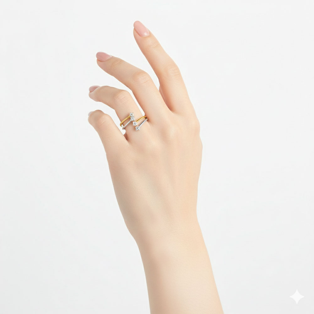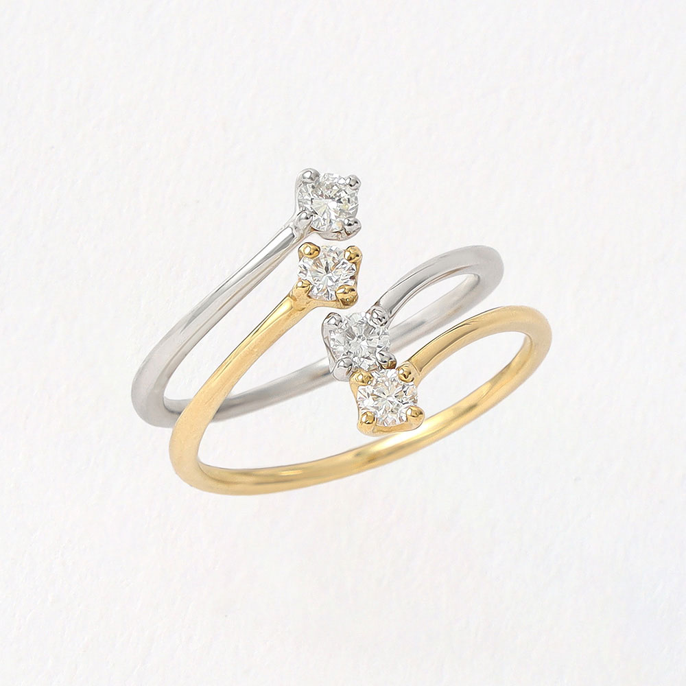華やかな18金、凛としたプラチナ900。それぞれに2石のダイヤモンドを配した、贅沢な2本のリングをセットでお届けします。ある日はゴールドのリング1本で、手元を優しく彩って。またある日には、プラチナのリングで知的なムードを演出。そして特別な日には2本を重ねて、華やかな輝きをお楽しみいただけます。コンビカラーはお手持ちのどんな時計やジュエリーとも合わせやすく調和します。その日の気分や装いに合わせて、3通りの表情を生み出すセットリングが日常を素敵に輝かせます。