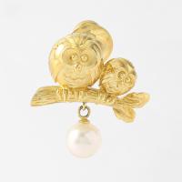 昔から多くの人に愛されてきた「ふくろう」モチーフ。確かなデッサンをもとにデザイン化された「ふくろうの親子」が寄り添ってポーズをとる愛らしいブローチです。ほのぼのとした姿が笑みを誘います。ちょっと光を抑えたサテン仕上げが質感を美しく表現しています。スイングするようにセットされた良質のパールは動きに合わせて軽やかに揺れます。
