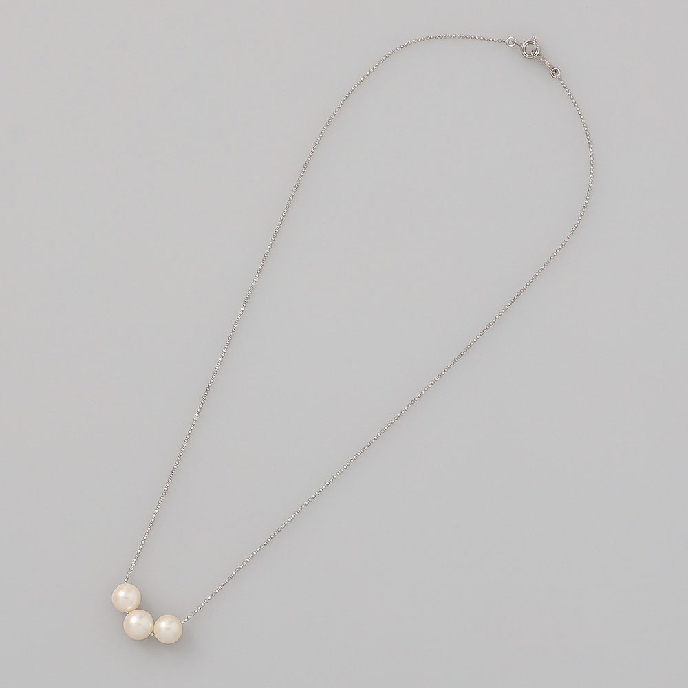 艶やかで光沢のあるアコヤ真珠3個付きのペンダントはどんな服装にも合わせやすく、使いやすいデザイン。他のペンダントとの重ね着けもでき、おしゃれの幅が広がります。