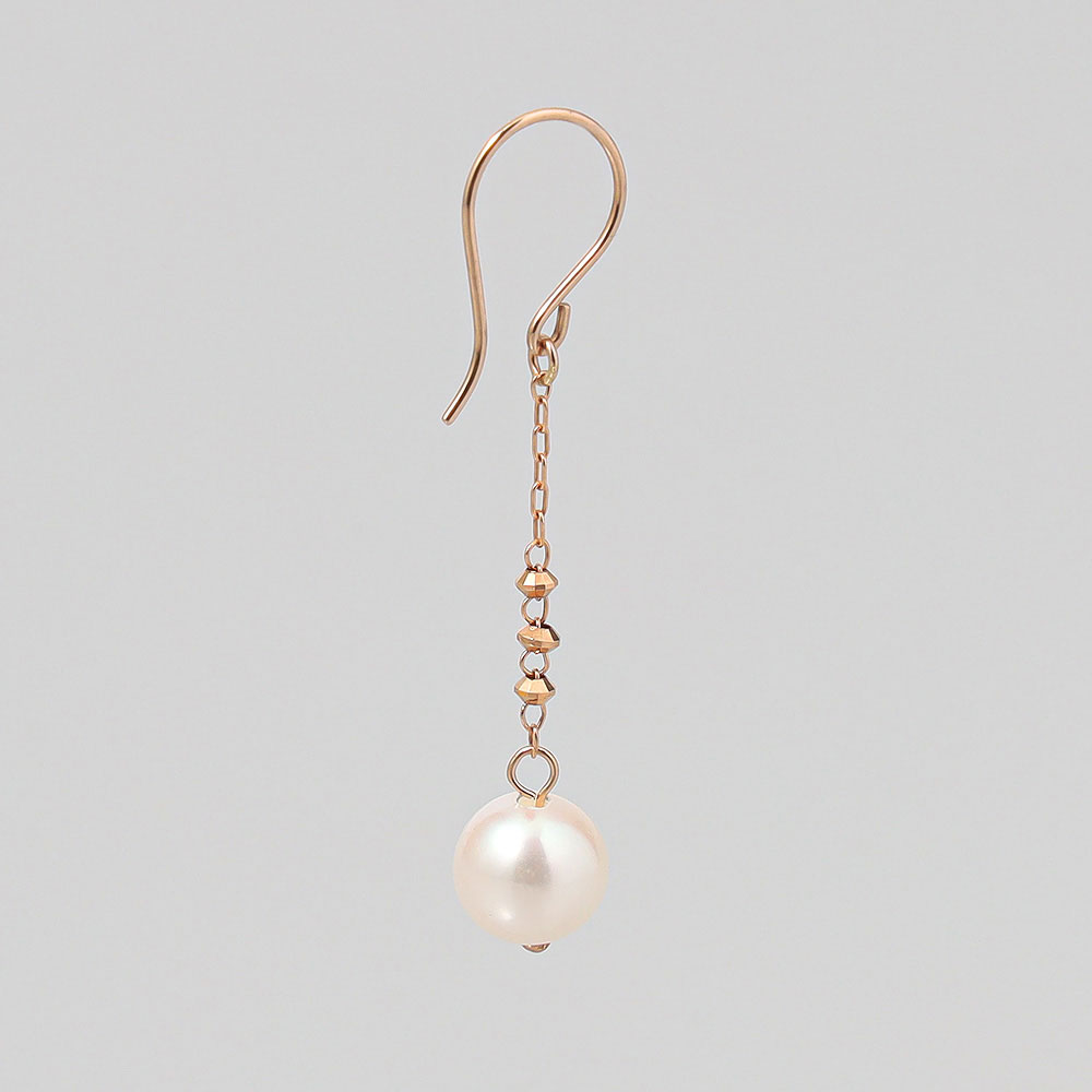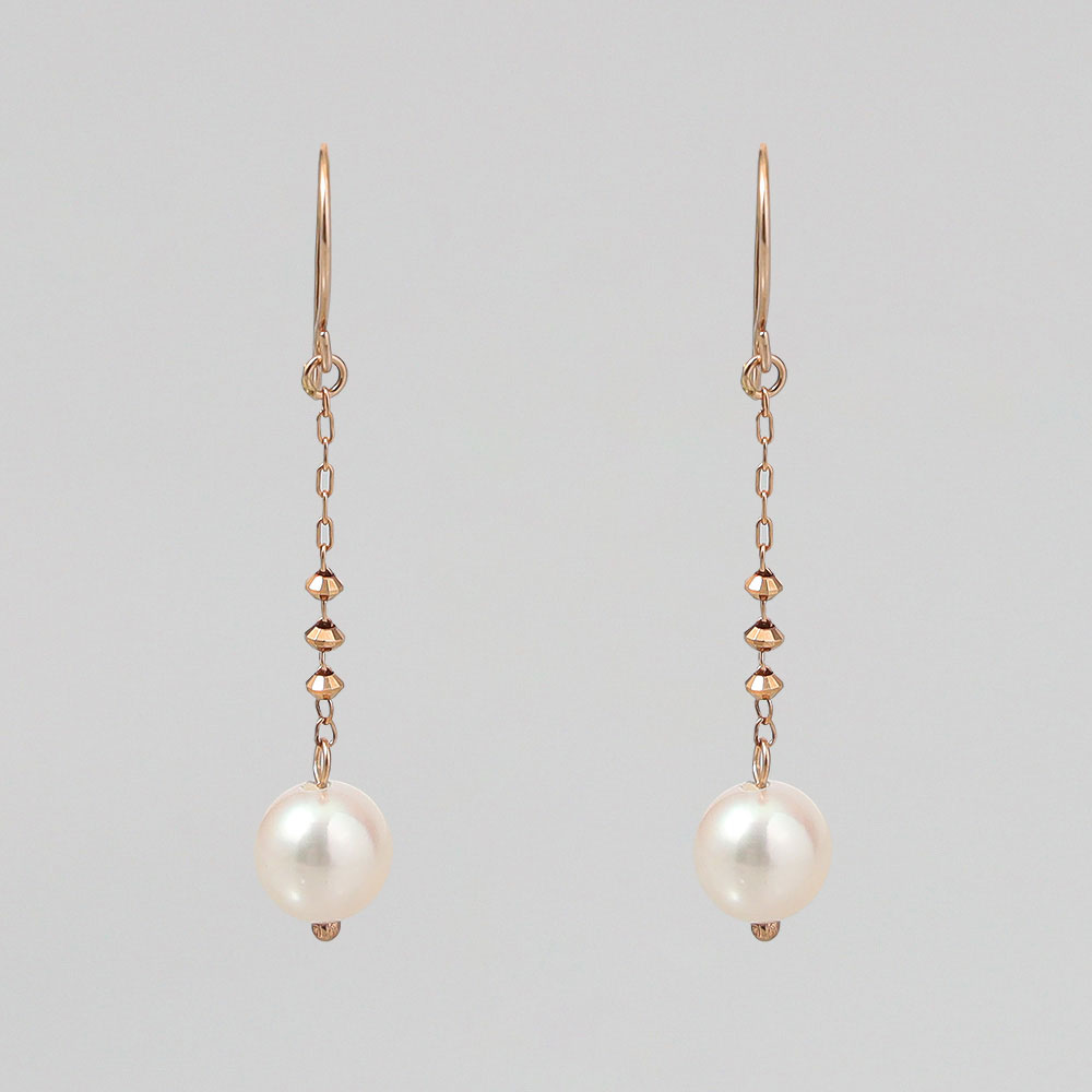 光沢のある艶やかな6mm珠アコヤ真珠とピンクゴールドが可愛らしいスイングタイプのピアスです。カジュアル使いにコーディネートが楽しめます。
