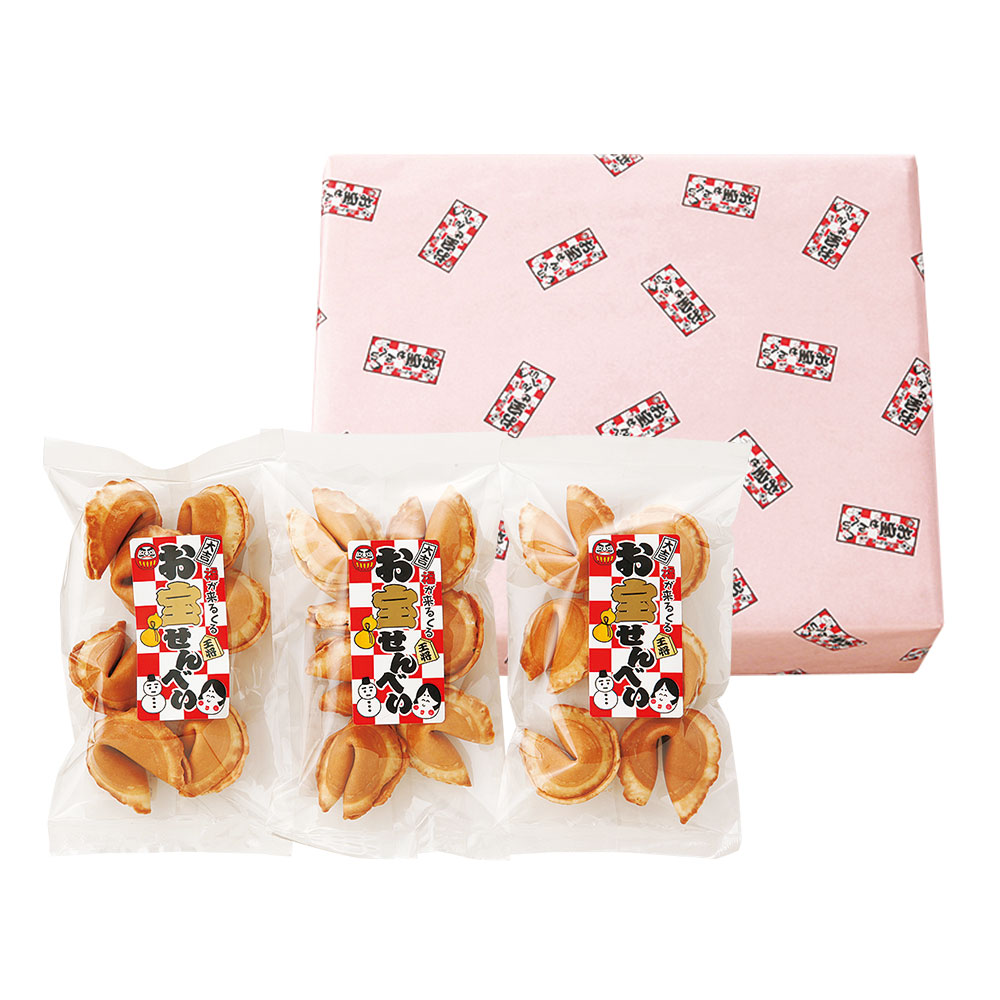 甘いおせんべいの中から、おみくじやお正月にまつわるおめでたいアイテム、可愛らしい玩具が出てきます。親しい方との集いの場で、ぜひお楽しみください。