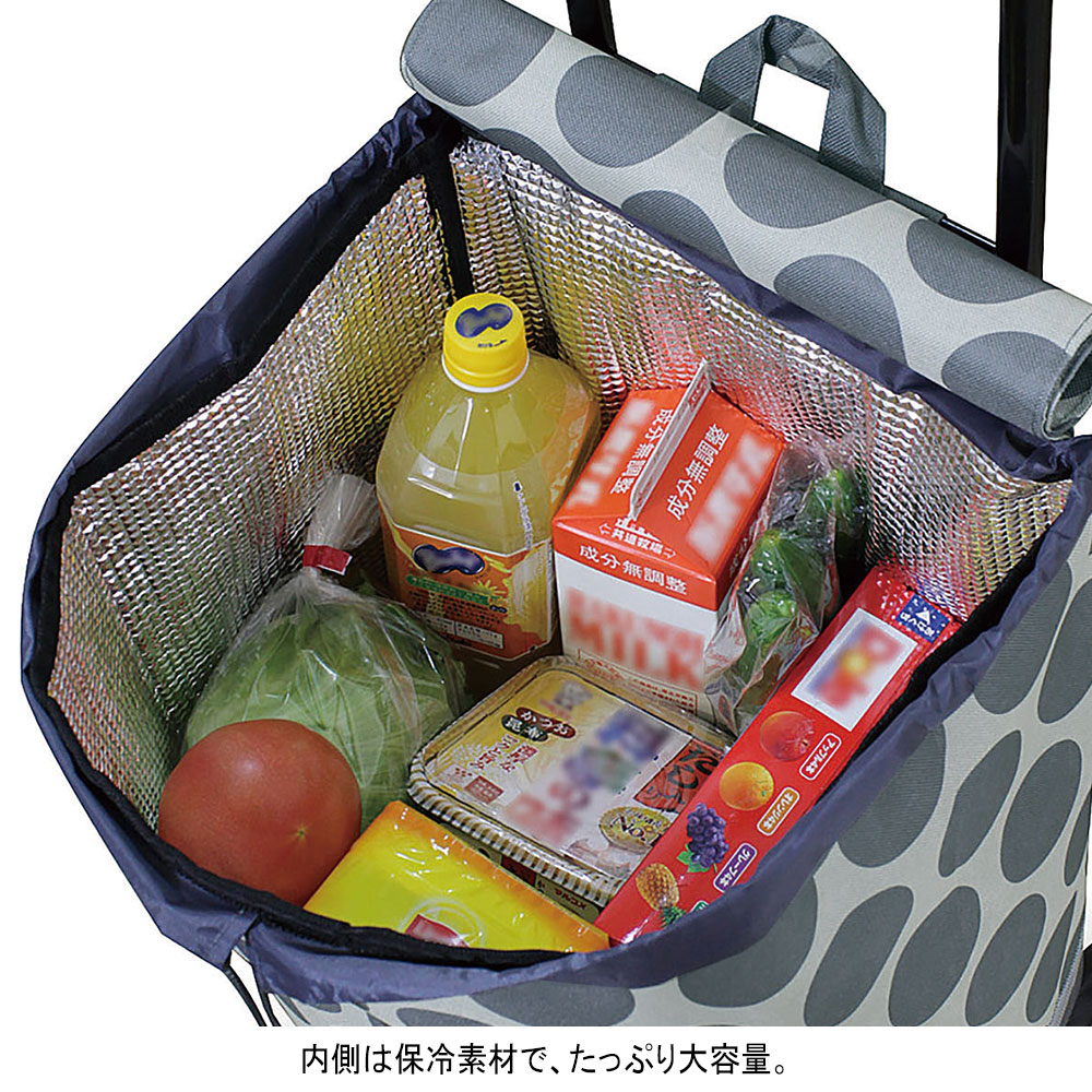 バッグは内側アルミ蒸着フィルム貼りで、取り外して持ち運び可能。重たい荷物も運びやすい。