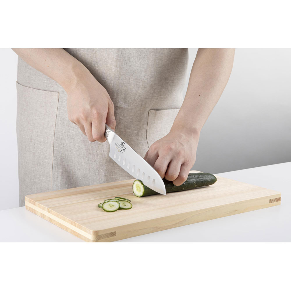 刃体:ステンレス単層材(刃材:モリブデンバナジウムステンレス刃物鋼)(刃付け形状/両刃付け)、柄:18-8ステンレス