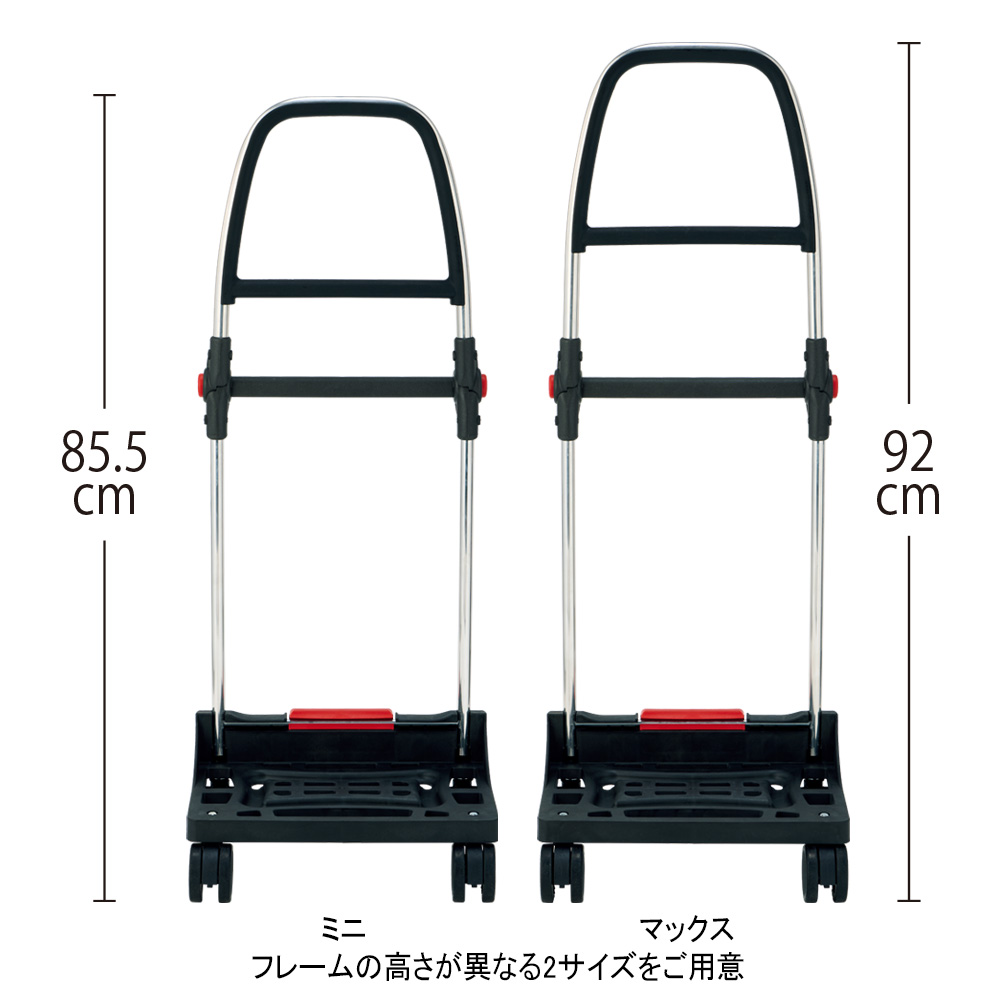 ミニ(約) 身長の目安:150~170cm、使用時:幅34×奥行23×高さ85.5cm、収納時:幅34×奥行14.5×高さ45.5cm、バッグ:幅33×奥行19.5×高さ43cm(持ち手含:53cm)