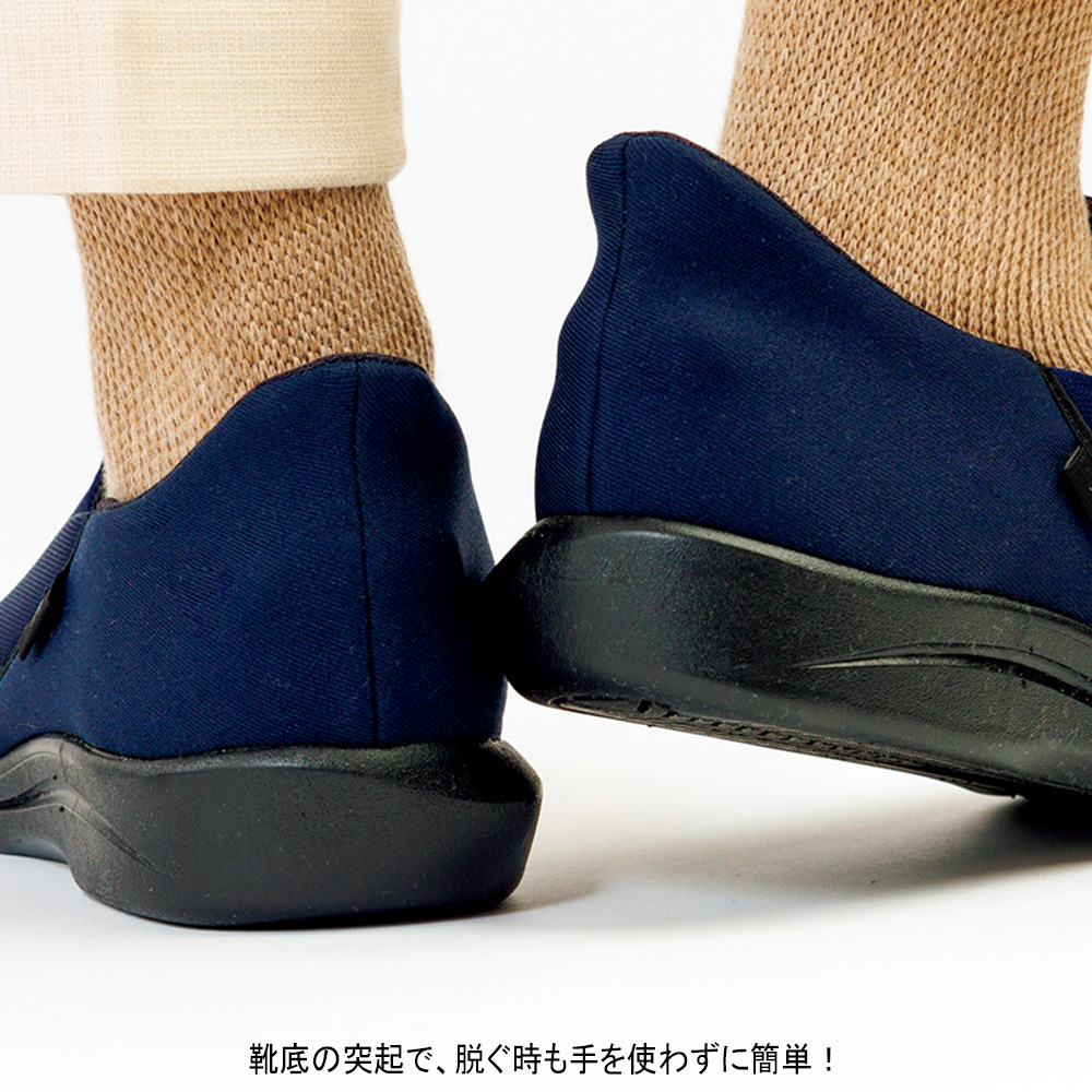 足が包み込まれる安心感。立ったままスポッと履けてお出かけが楽しみ。