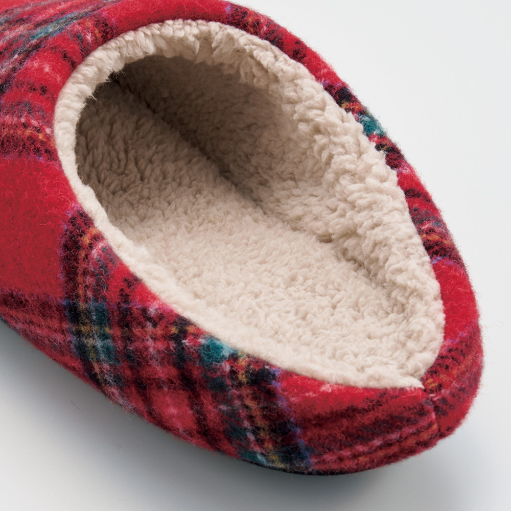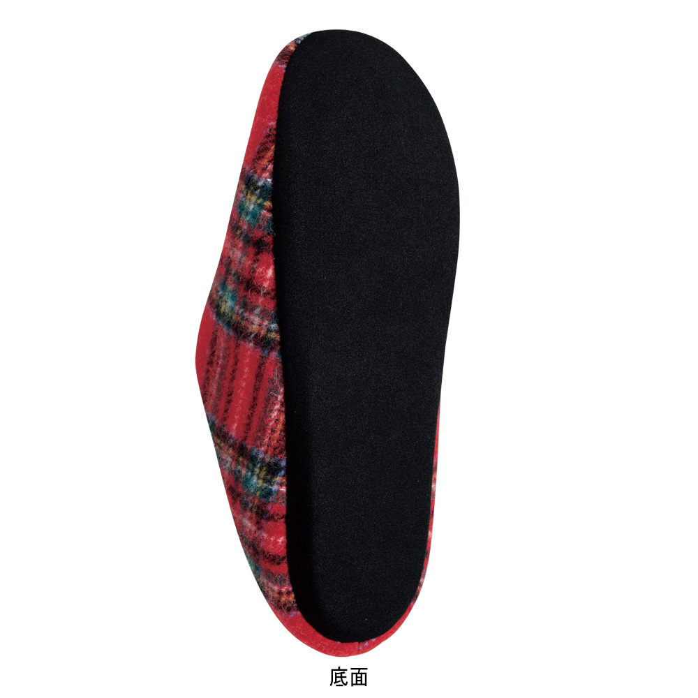 中敷、甲裏のボアが足元を優しい暖かさで包みます。幅広い年齢にご愛用いただけるチェック柄。