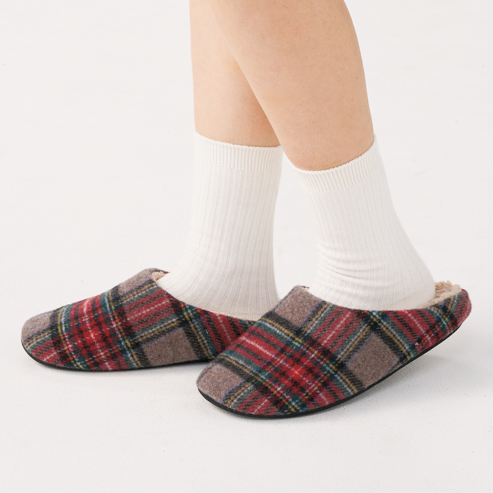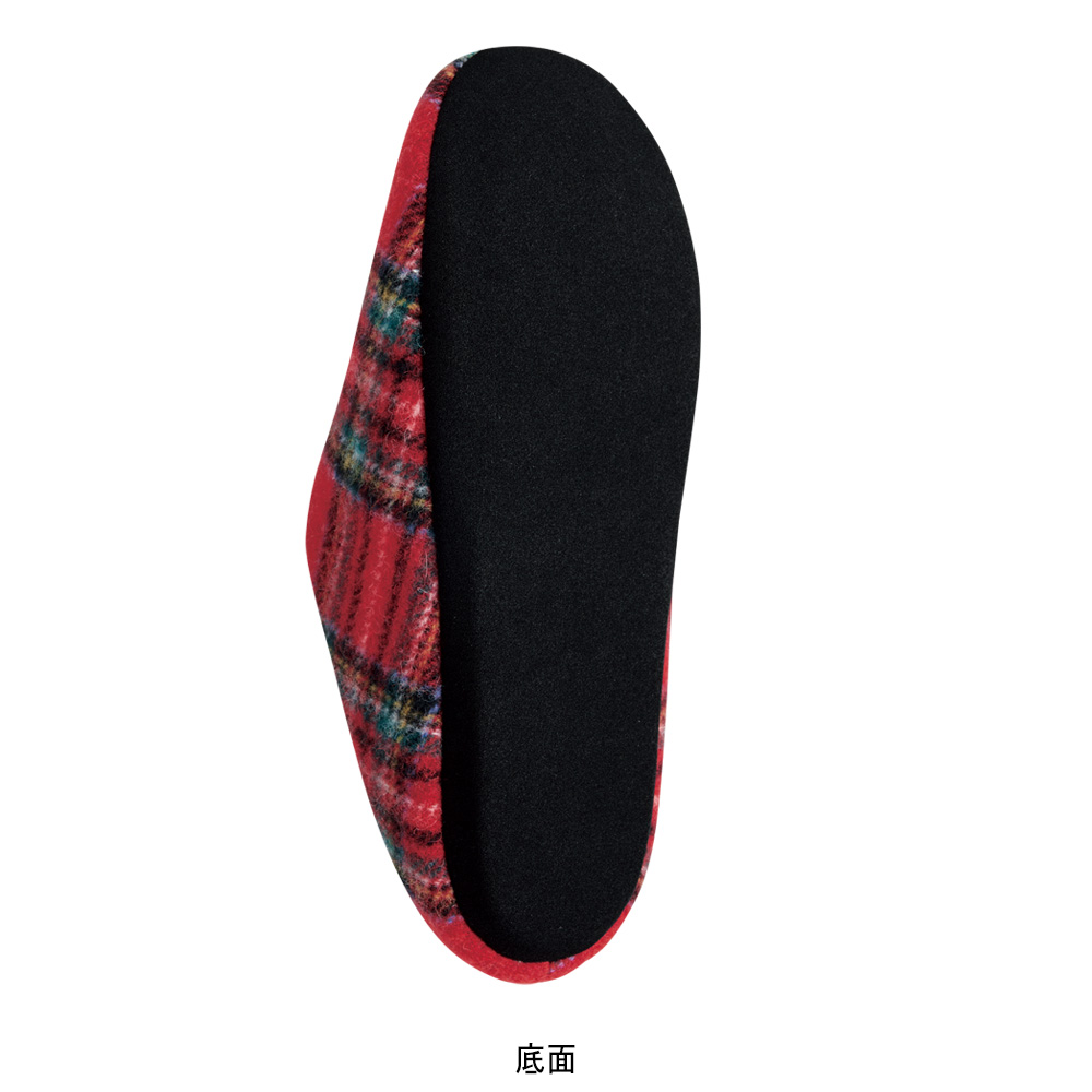 中敷、甲裏のボアが足元を優しい暖かさで包みます。幅広い年齢にご愛用いただけるチェック柄。