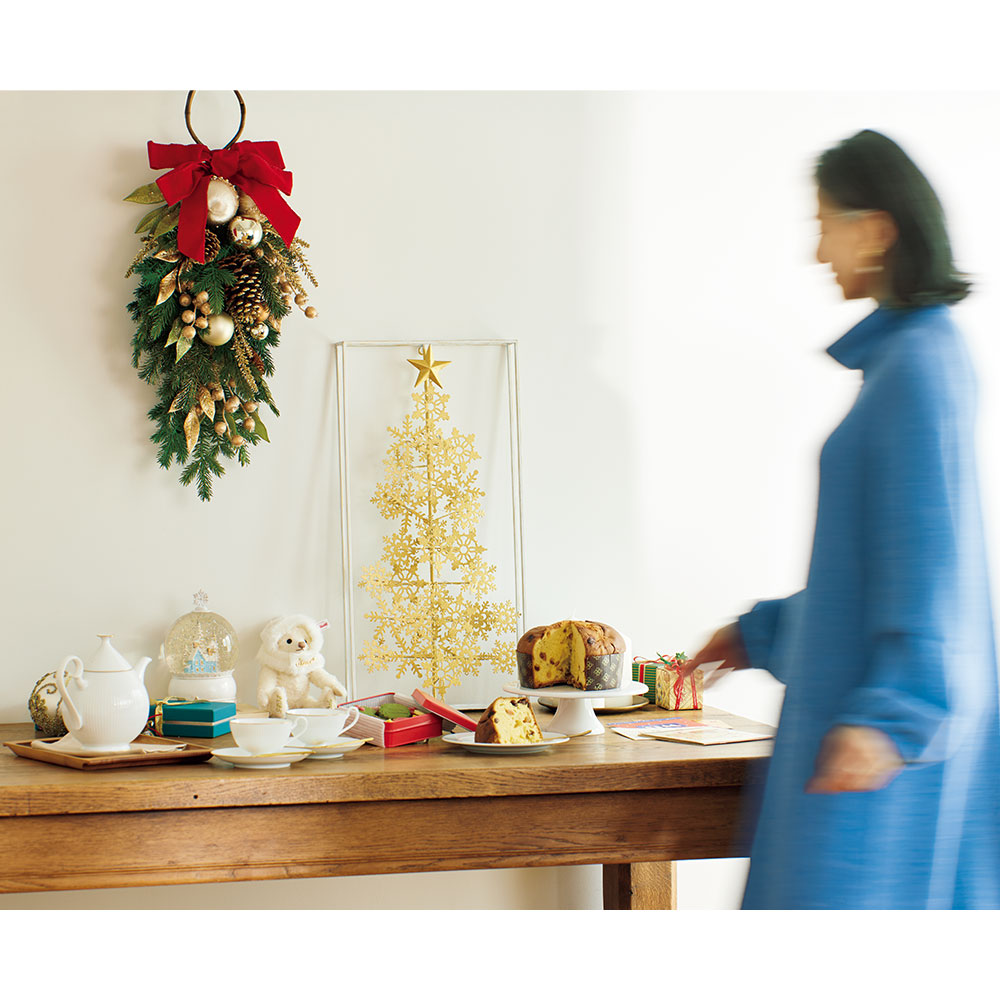 壁に掛けられるフレーム型のツリー。あえてアンティーク調に仕上げた、大人のツリーにふさわしいシックな表情と光のイルミネーションが楽しめます。